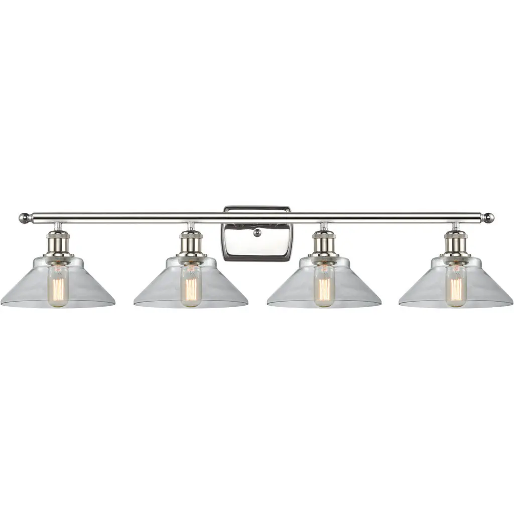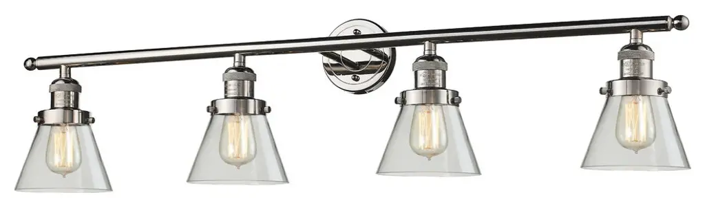 One of our largest and original collections, the Franklin Restoration is made up of a vast selection of heavy metal finishes and a large array of metal and glass shades that bring a touch of industrial into your home.Features:Solid brass 180 degree adjustable swivels with internal teeth that lock in at 5 degree intervals with engraved cast cupRated for 100 watt maximum per socketUL/CUL Damp RatedCompatible with Incandescent, LED, Fluorescent and Halogen bulbsNumber of Bulbs: 4Bulb Wattage: 100Bulb Type: IncandescentBulb Included: NoVoltage: 120Finish: Brushed Satin Nickel Finish Shade Finish: Clear Halophane Shade