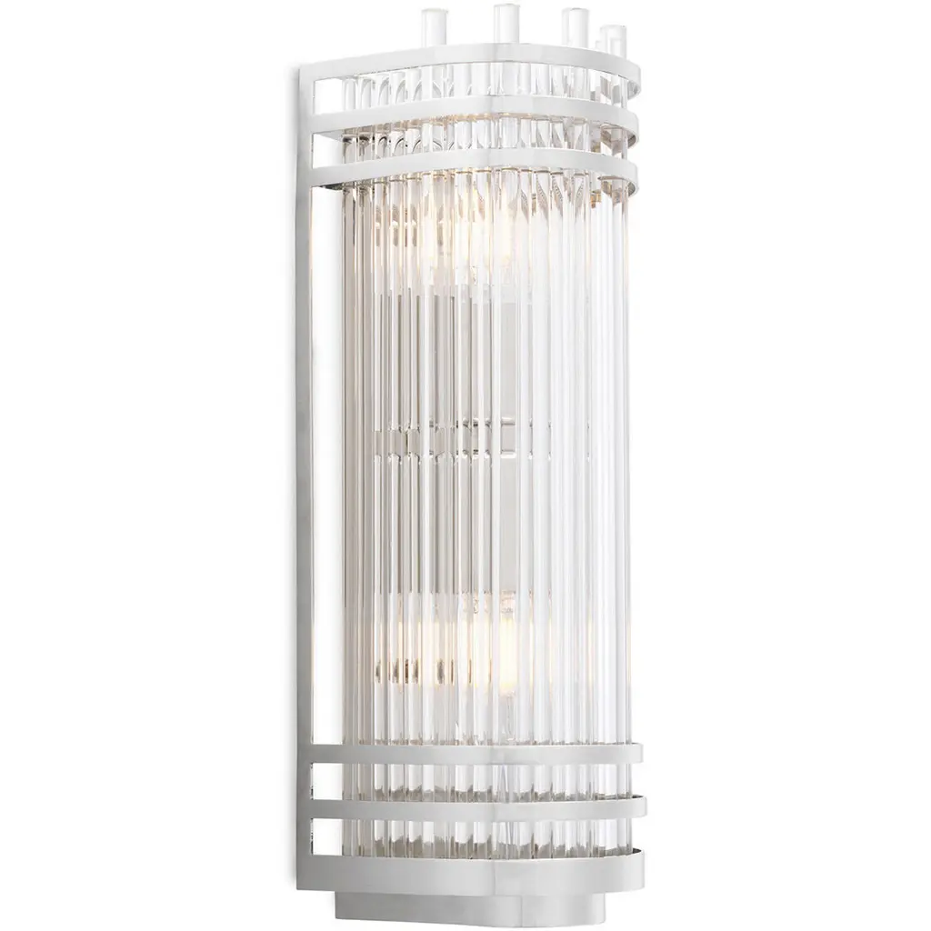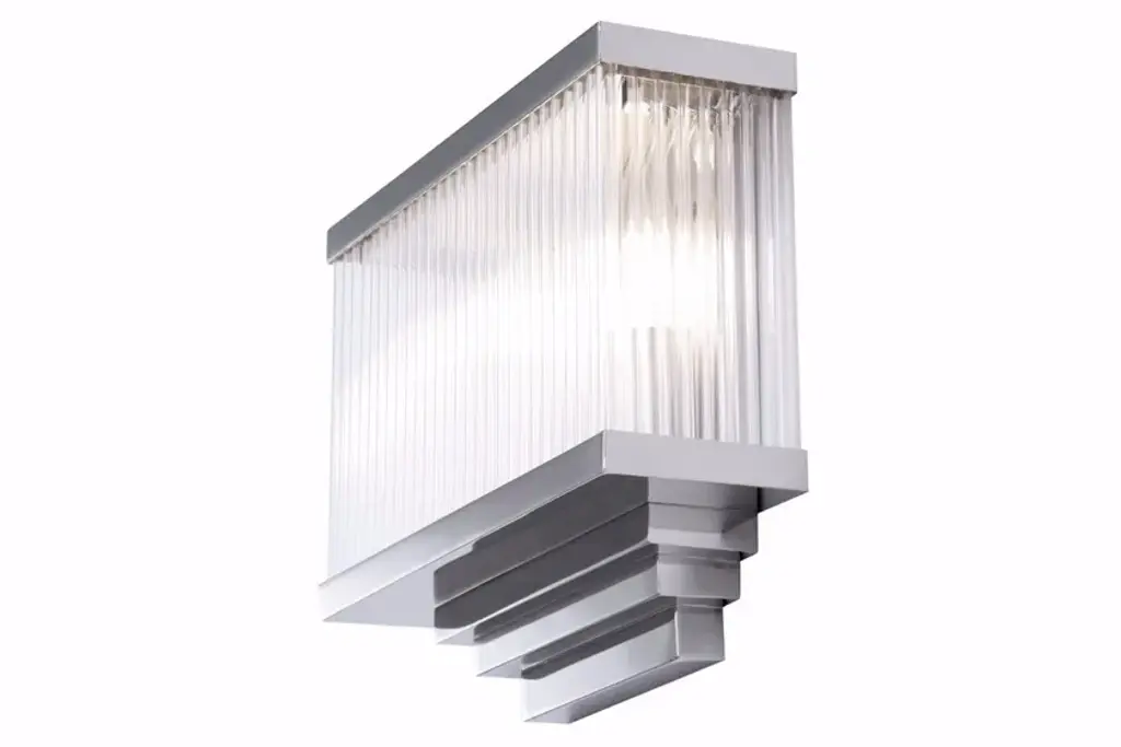 Hamburg I is a wall lamp made of brass available in different finishes.Finishes: Antique, Shiny brass, Matt brass, Shiny nickel, Matt nickelCapacity : 2x60 W E14The stair-shaped form decor on either or both ends of the lights is the distinguishing décor of this modern collection. Clear tubes diffuse the light making lovely light refractions on its surface. The collection is a perfect choice for interiors of average size with standard ceiling heights with a minimalist design approach where the angular form is the basis.