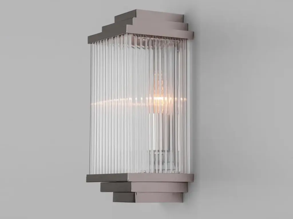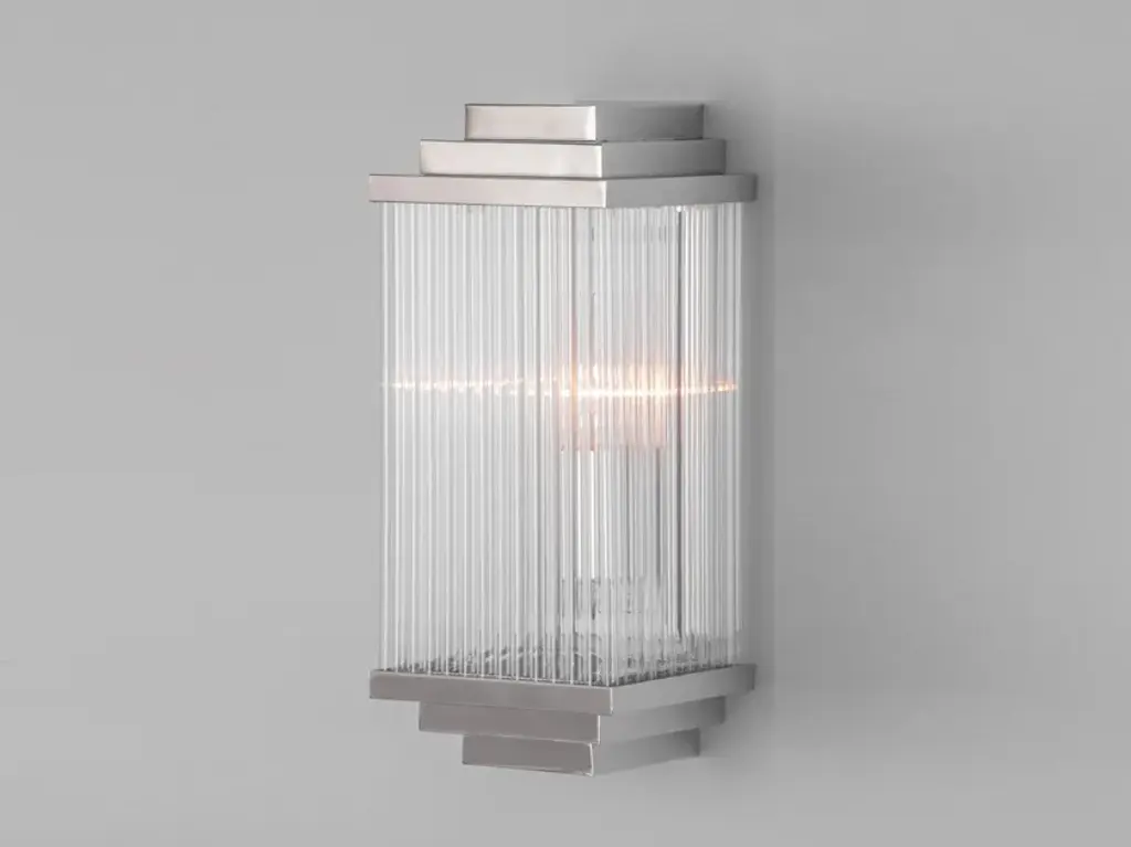 Hamburg III is a wall lamp made of brass available in different finishes.Finishes: Antique, Shiny brass, Matt brass, Shiny nickel, Matt nickelCapacity : 1x60 W E14The stair-shaped form decor on either or both ends of the lights is the distinguishing décor of this modern collection. Clear tubes diffuse the light making lovely light refractions on its surface. The collection is a perfect choice for interiors of average size with standard ceiling heights with a minimalist design approach where the angular form is the basis.