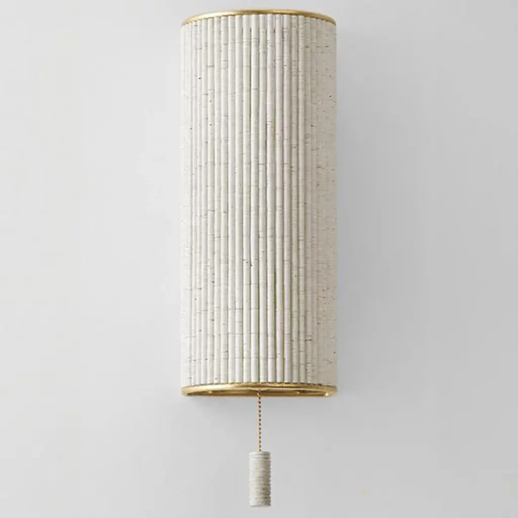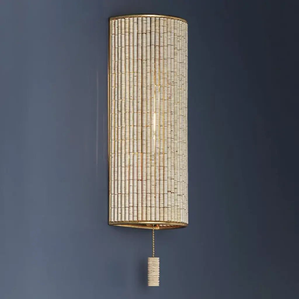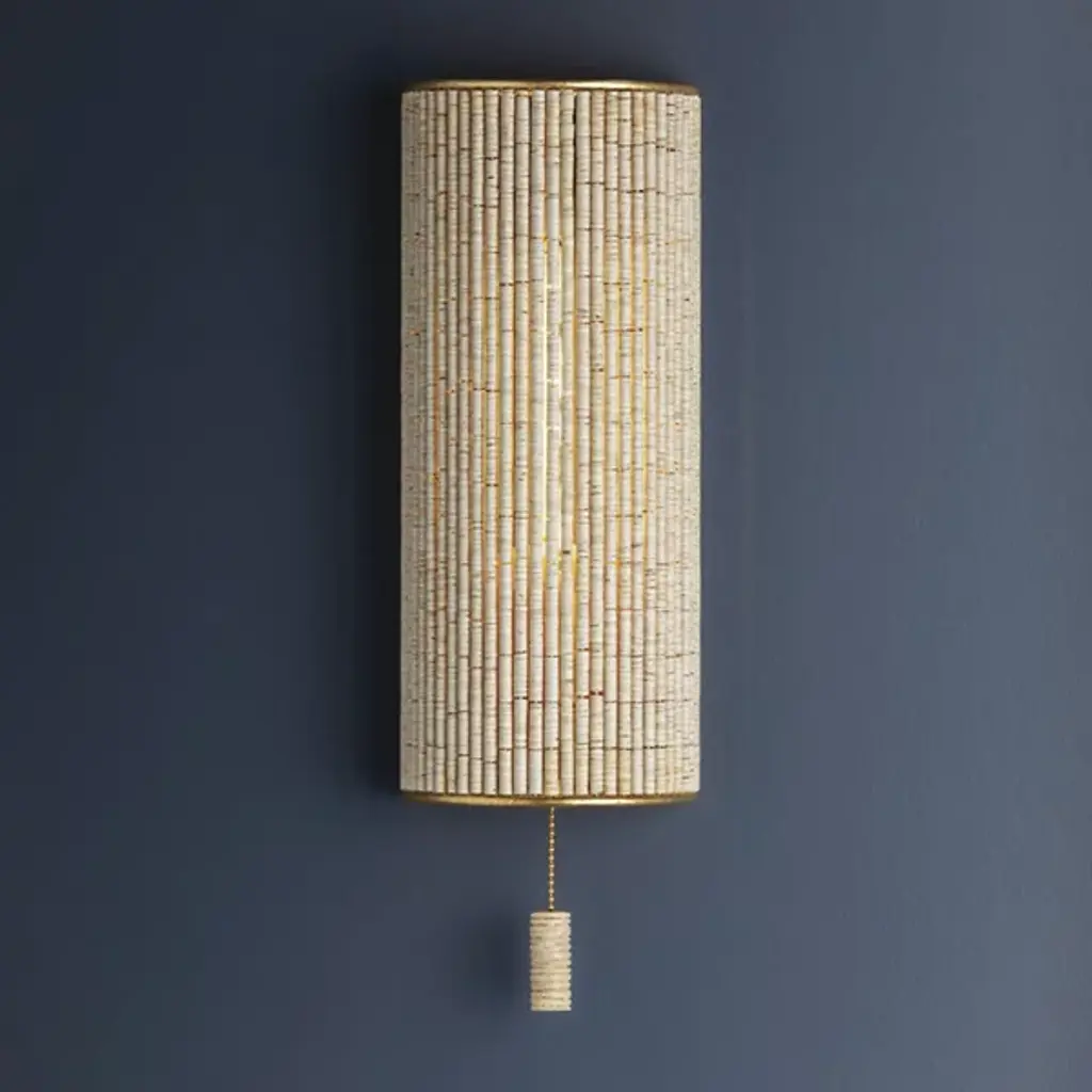 Incorporating Art Deco-inspired simplicity with a touch of elegance, the Hampden Wall Sconce by Hudson Valley Lighting boasts meticulous layers of exquisite white Coco beads adorning its shade, accentuating the material's beauty and craftsmanship. A dangling pull chain adds a playful element and enhances its charm, while a Vintage Gold Leaf finish creates an air of luxury. The lamping burnishes its circular backplate, exuding stylish sophistication and matching contemporary style with coastal elements. It is an ideal choice for damp-listed areas such as bathrooms or outdoor spaces. Due to the unique nature of the beads, each fixture will show slight variations in colors and patterns.