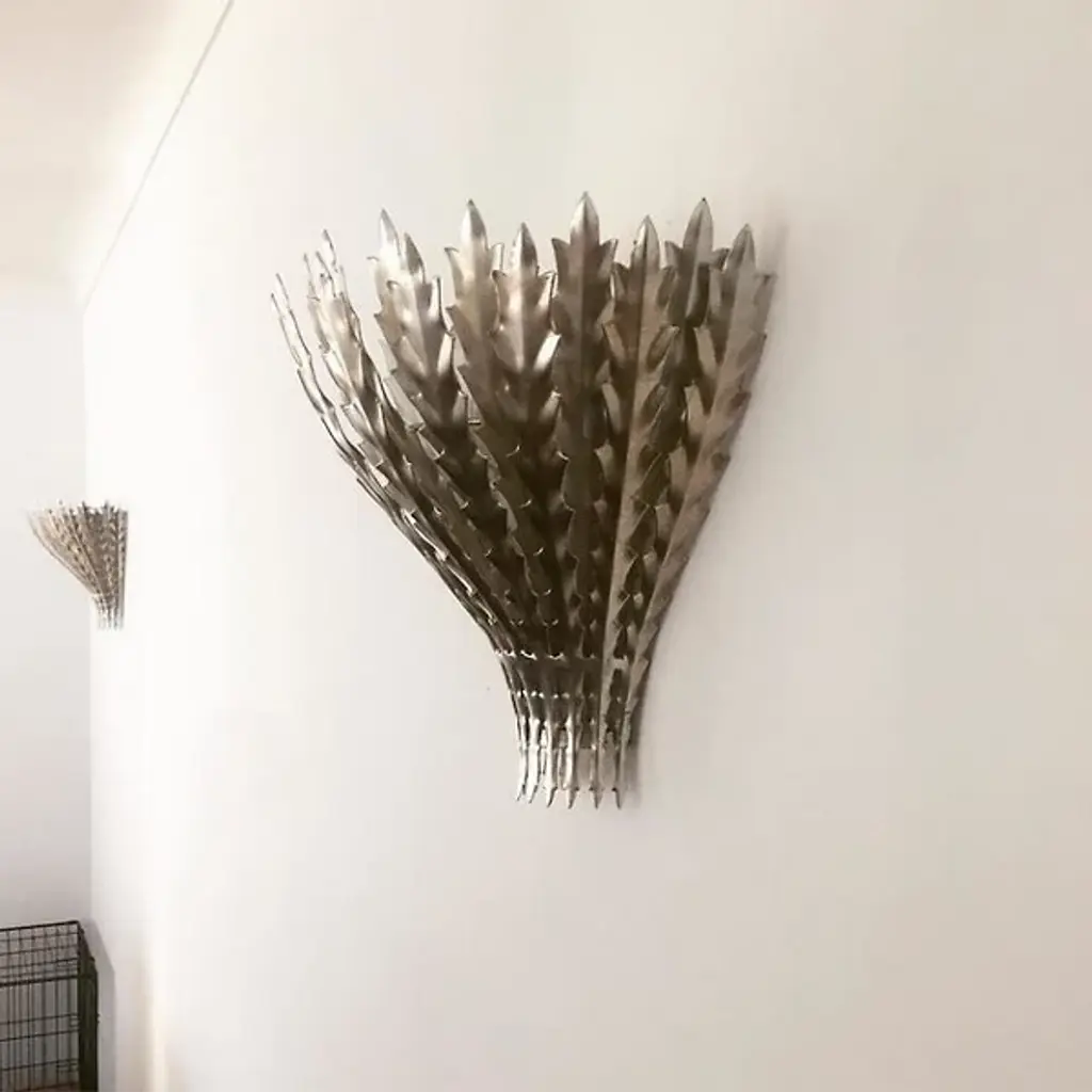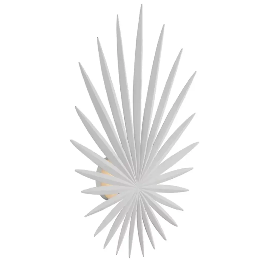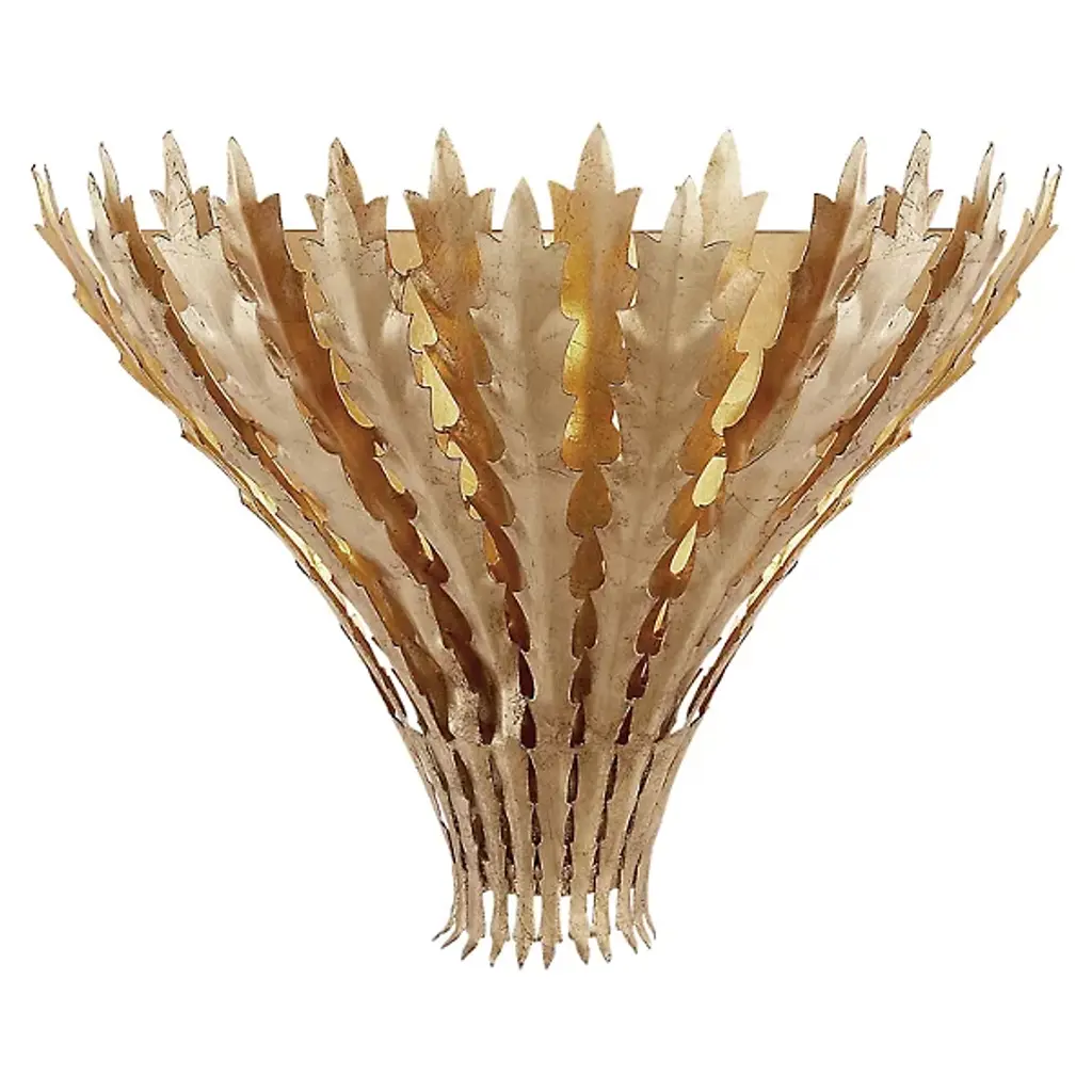 The Hampton Wall Sconce by Visual Comfort Signature, formerly known as Visual Comfort, brings an alluring organic aesthetic to your living space. Its design features a collective of artisan-sculpted metal leaves that overlap, forming a shade around an internal light source. Once lit, the fixture seems to come to life, radiating through the leaves at different angles and intensities for a truly vibrant experience.