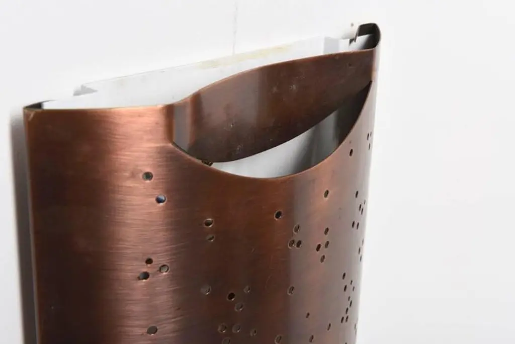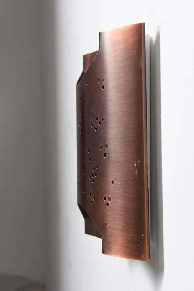 "Starlite" stunning handmade curved copper perforated wall sconces.Halogen up and downlight.