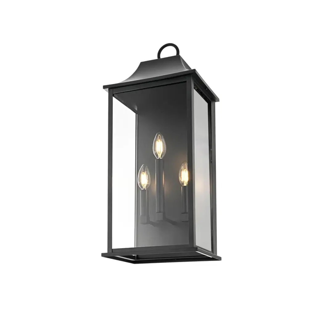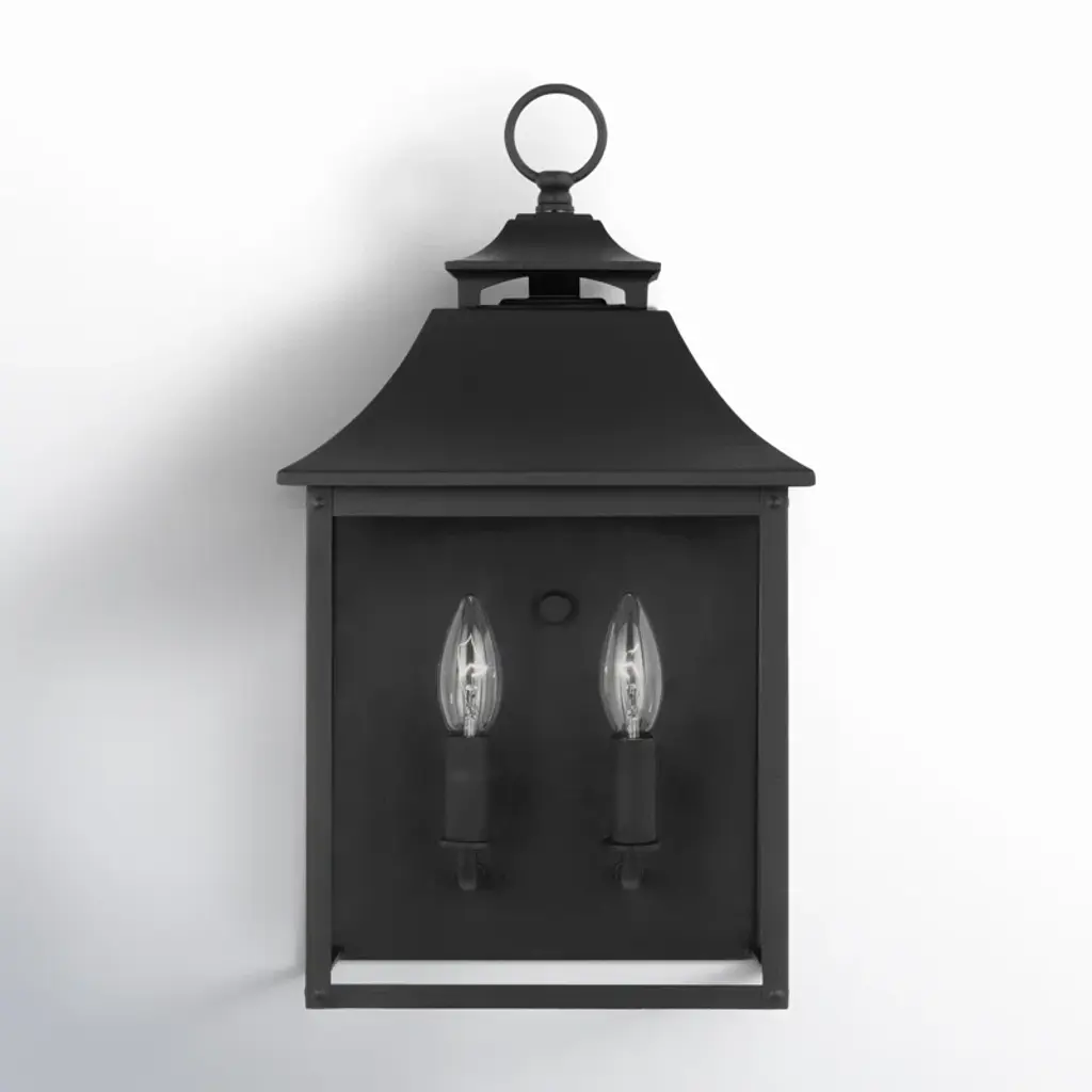 Transform your outdoor spaces with this distinctive wall lantern, where vintage-inspired design meets modern craftsmanship. Built from sturdy iron and softened with frosted glass, this piece blends clean rectangular lines with a gently curved cap and decorative ring. The triple vintage-style bulb (bulb is not provided) casts a warm, soothing glow, ideal for creating a welcoming atmosphere. Finished in a versatile matte black, this weather-resistant lantern is as practical as it is stylish—perfect for adding character to patios, entryways, or garden paths.
