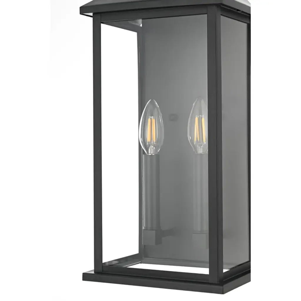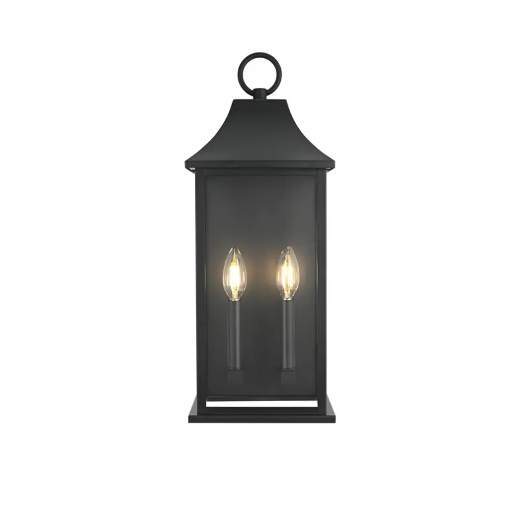 Transform your outdoor spaces with this distinctive wall lantern, where vintage-inspired design meets modern craftsmanship. Built from sturdy iron and softened with frosted glass, this piece blends clean rectangular lines with a gently curved cap and decorative ring. The double vintage-style bulb (bulb is not provided) casts a warm, soothing glow, ideal for creating a welcoming atmosphere. Finished in a versatile matte black, this weather-resistant lantern is as practical as it is stylish—perfect for adding character to patios, entryways, or garden paths.