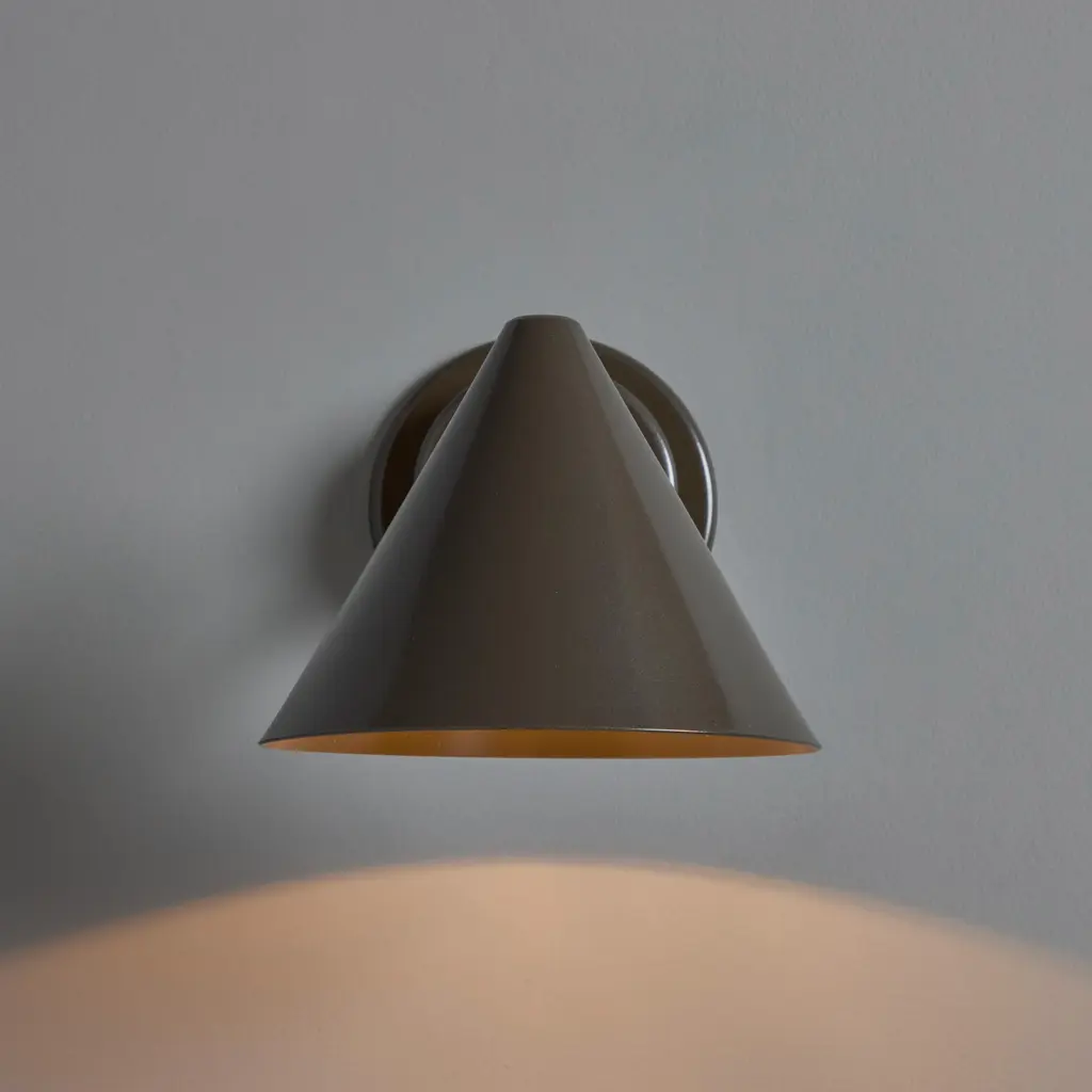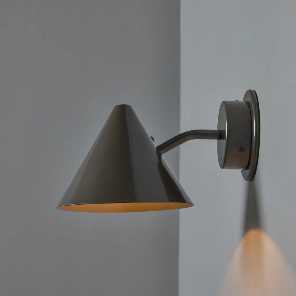 Hans-Agne Jakobsson 'Mini-Tratten' Outdoor Sconce in Painted Bronze An exclusive made for U.S. and UL listed authorized smaller-scale re-edition of the classic Swedish design is executed in a painted metal shade with white painted interior and hardware painted to match exterior. Suitable for both outdoor or indoor use. Price is per item. Available in unlimited quantities in choice of raw brass, raw copper, verdigris, darkly patinated verdigris, dark brown patinated, and white, black, silver, steel, bronze or brown painted metal- please see our other listings. This listing is for the painted bronze 'mini' metal variant. Several painted lamps in-stock and ready to quick ship. Patinated and painted variants are made to order in approximately 1-2 weeks, but can be expedited for an additional fee. Please note that in-stock inventory availability can change at any time. For time-sensitive orders, kindly inquire prior to purchasing. Authorized re-edition newly produced by Orsjo, Sweden. Professionally rewired for US electrical, UL listed for wet locations, and with custom modified back plates for mounting over US junction box. Wired for US 120v with bi-pin socket to accommodate a single 60W equivalent LED (20W max halogen) G4, GX5.3, or G6.35 bulb, not included. Please note that only one representative example is featured in the images. Made to order.