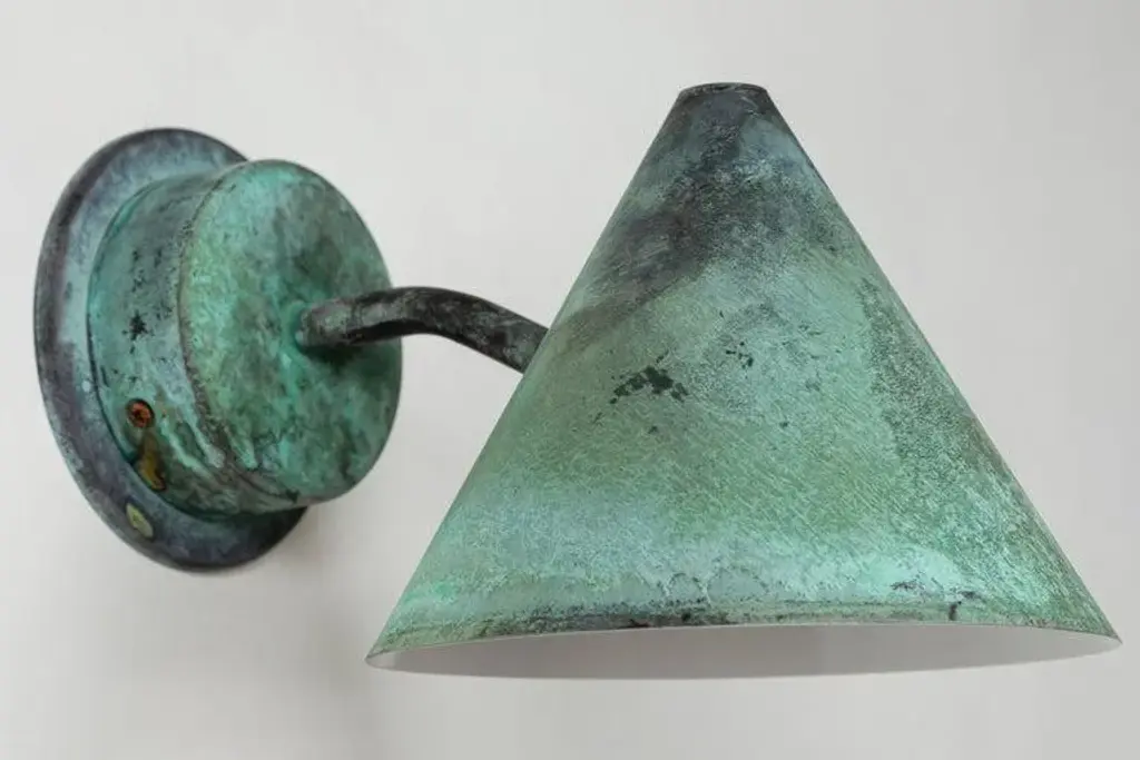 Hans-Agne Jakobsson 'Mini-Tratten' Verdigris Patinated Outdoor Sconces - A Pair
