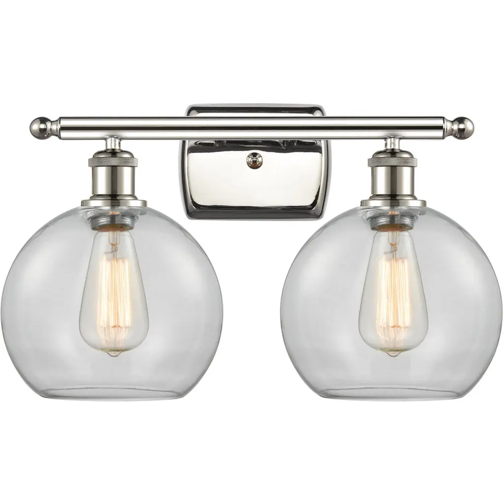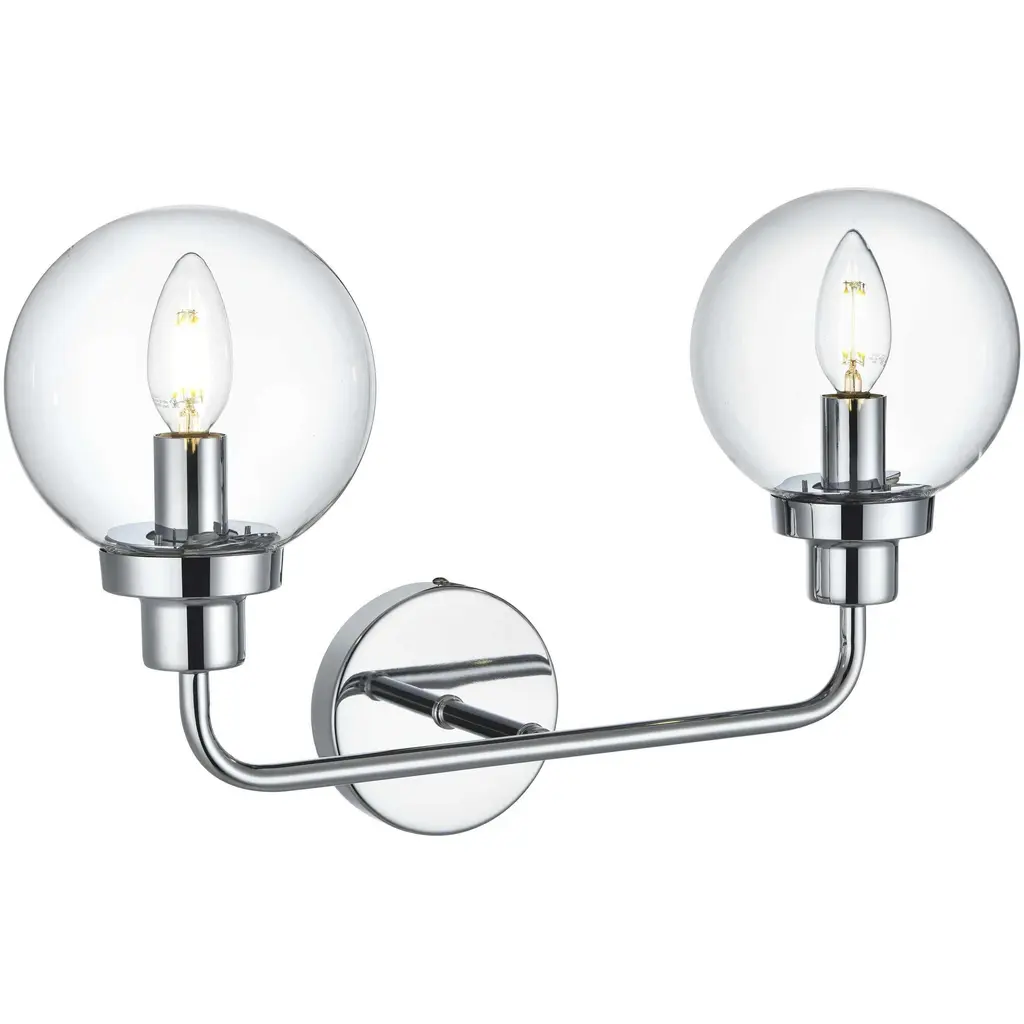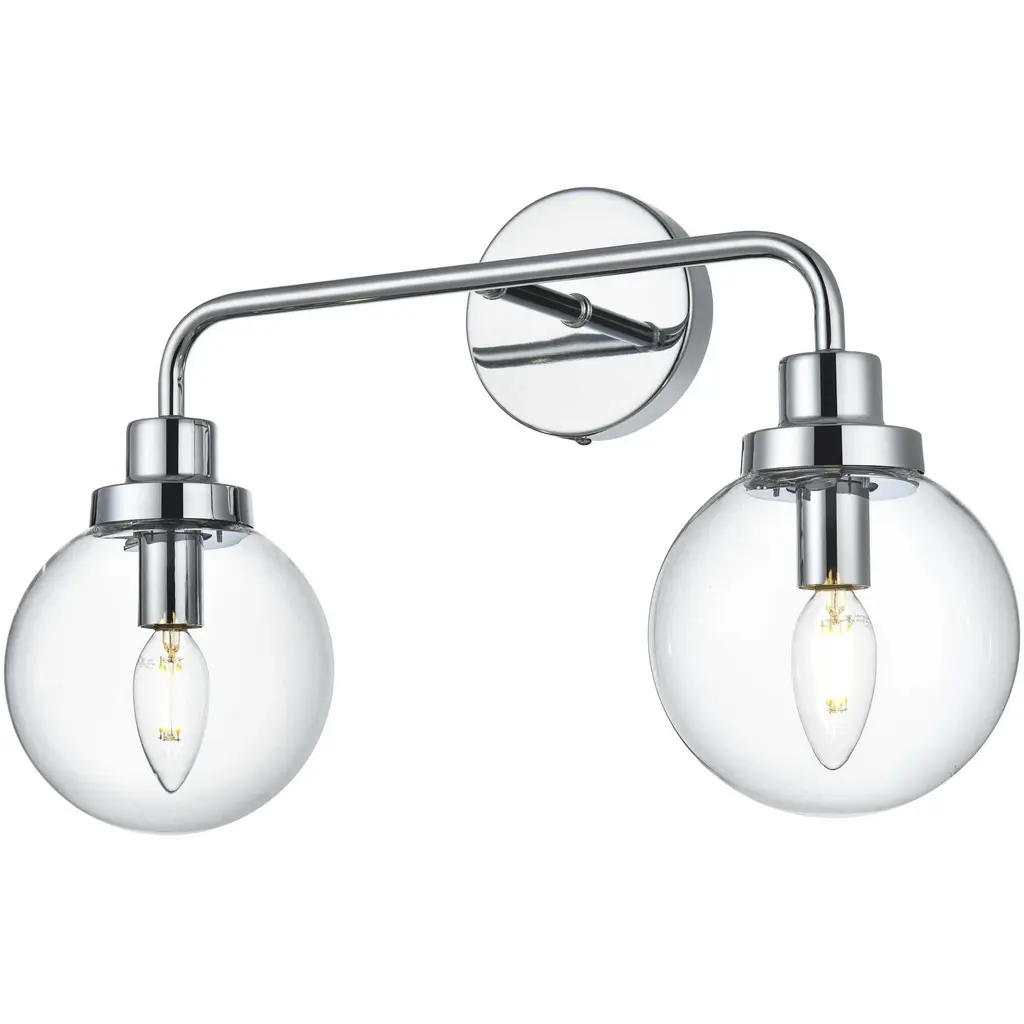 Add a touch of timeless elegance to your home with this sophisticated wall sconce. Available in five gorgeous finishesSatin Gold, Black, Brass, Chrome, and Polished Nickelthis fixture is designed to complement a wide range of interior styles. The clear glass globe offers a modern yet classic aesthetic, gently diffusing light to create a warm and inviting atmosphere. Whether installed facing up or down, this wall sconce brings versatility and charm to any room, making it an ideal choice for bathrooms, bedrooms, hallways, or living areas. The two E12 socket accommodates a variety of bulb types (bulb not included), providing the freedom to tailor the light to your preferred level of brightness. Enhance your space with the graceful lines and soft illumination of this stunning wall sconce, and enjoy a beautiful blend of style and functionality.