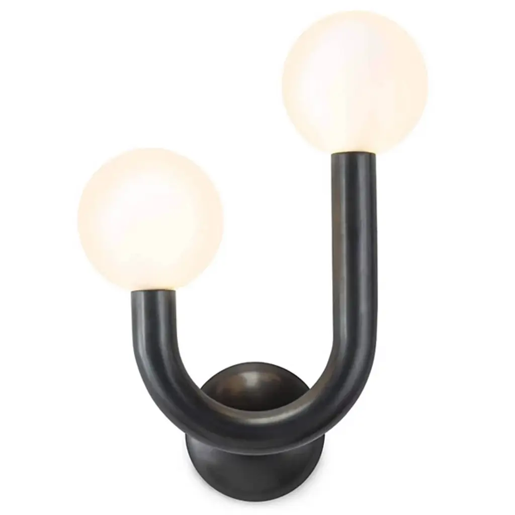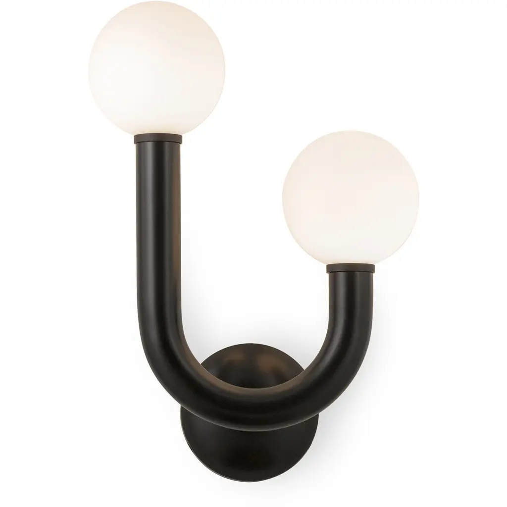 Add a touch of playful charm and modern elegance to your outdoor space with the Happy Outdoor Wall Sconce from Regina Andrew. Featuring a sleek metal frame paired with matte white glass globes, this sconce offers a striking contrast that enhances any patio, porch, or garden. Its whimsical yet sophisticated design creates a warm, inviting glow, making it an eye-catching addition to your exterior decor while providing stylish illumination for your outdoor areas.