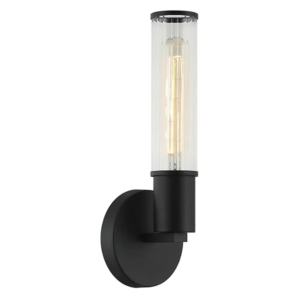 The Harbin Wall Sconce is presented by Quorum International. This single light fixture has thin lines and an open back that frames the lighting. It is an essential design that feels crisp, clean, and understated. Its elegance is sure to please its viewers. It’s the perfect light for your locales of choice.