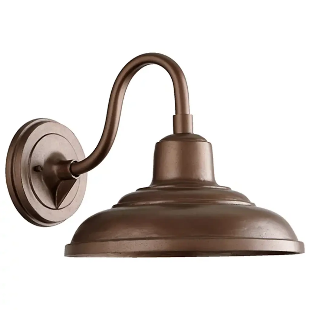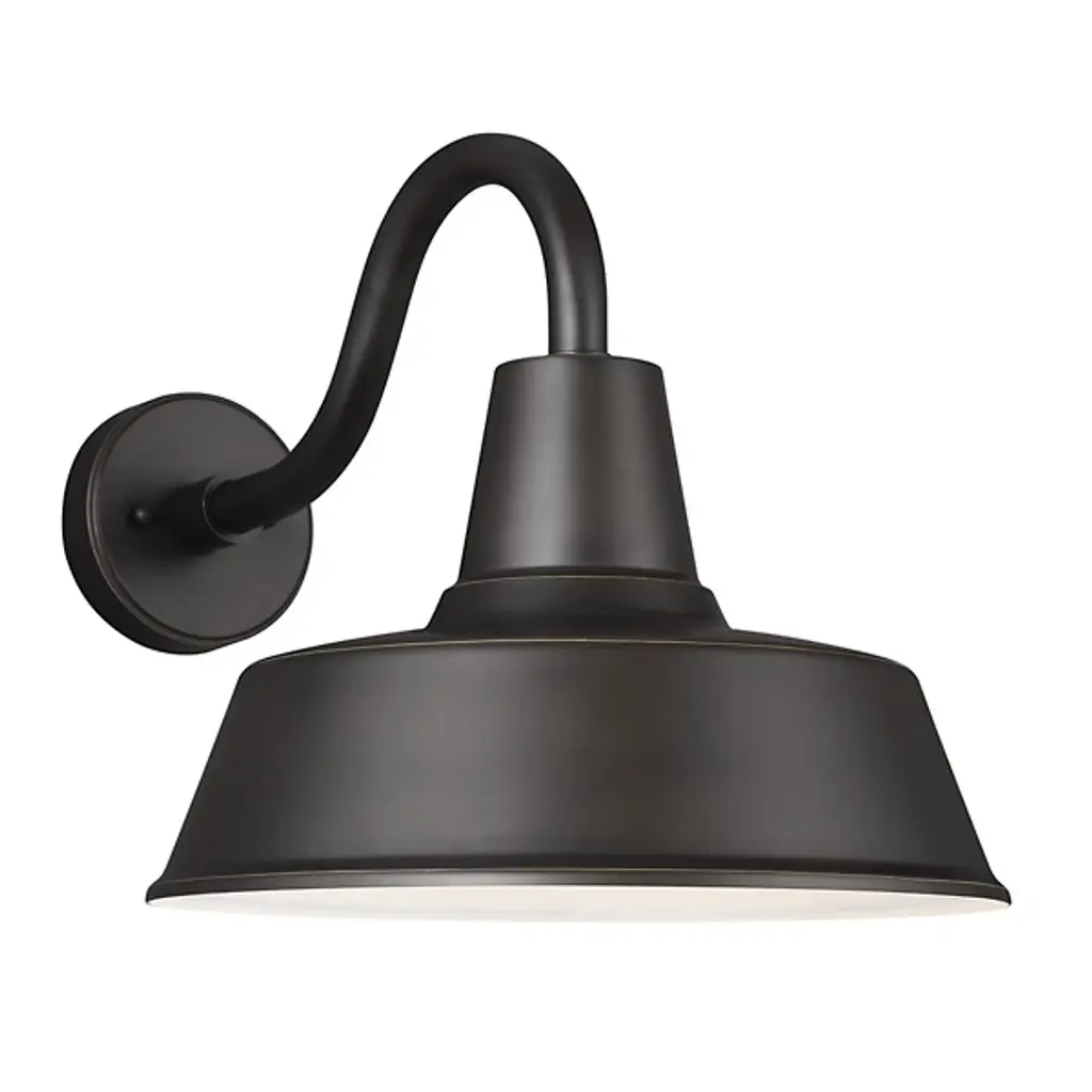 Distinguish your home from the others in the neighborhood with a Harbison LED Outdoor Wall Sconce by The Great Outdoors: Minka-Lavery. It's a classic gooseneck design with a dome shade and a round wall plate in a textured metal finish for a nod to industrial chic that complements transitional or contemporary houses. A dimmable and energy efficient exterior lighting option, this timeless fixture is perfect for the front door, verandah, patio or garage.