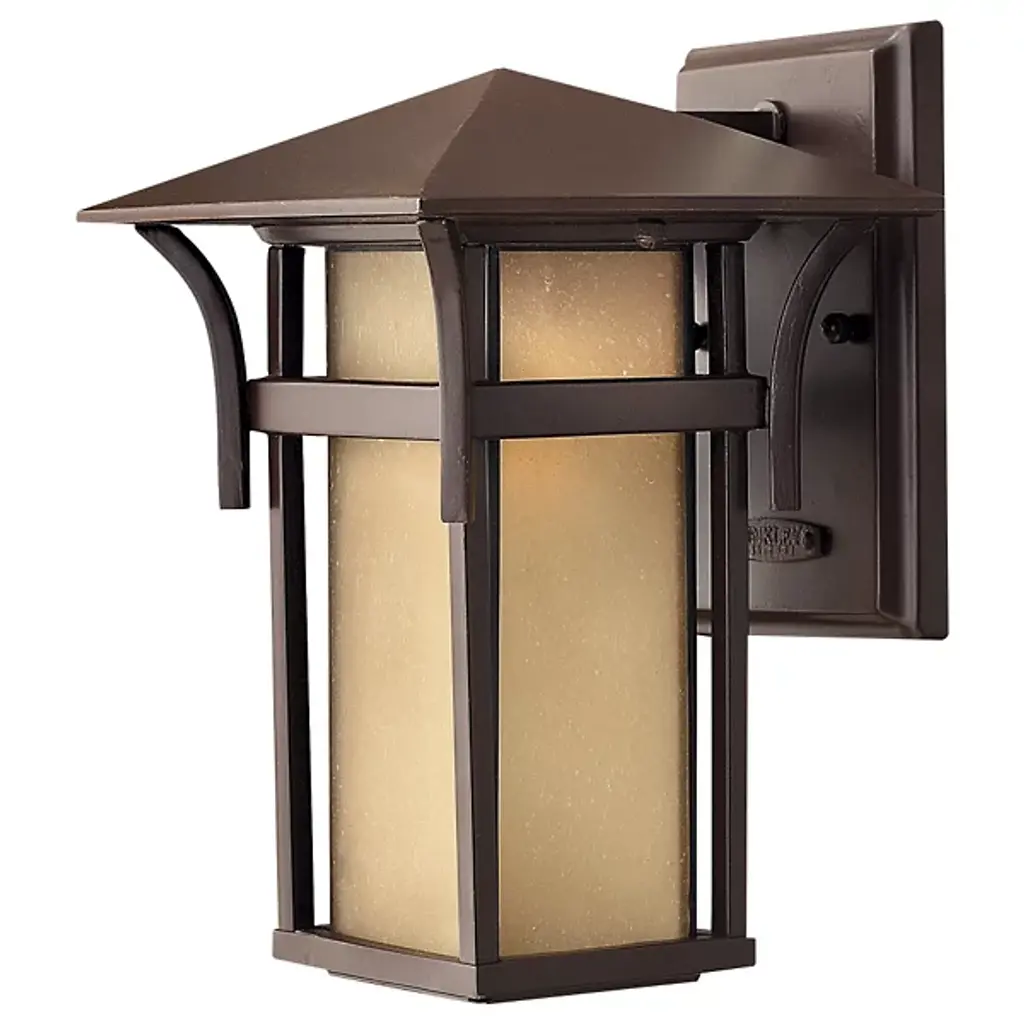 The Hinkley Lighting Harbor Outdoor Wall Sconce No. 2570 is offered in a variety of finish options. Its Mission-inspired design, with low horizontal lines and muted tones, is an ideal option for many of today's outdoor living spaces. Will enhance the mood of porches, patios, decks and more.