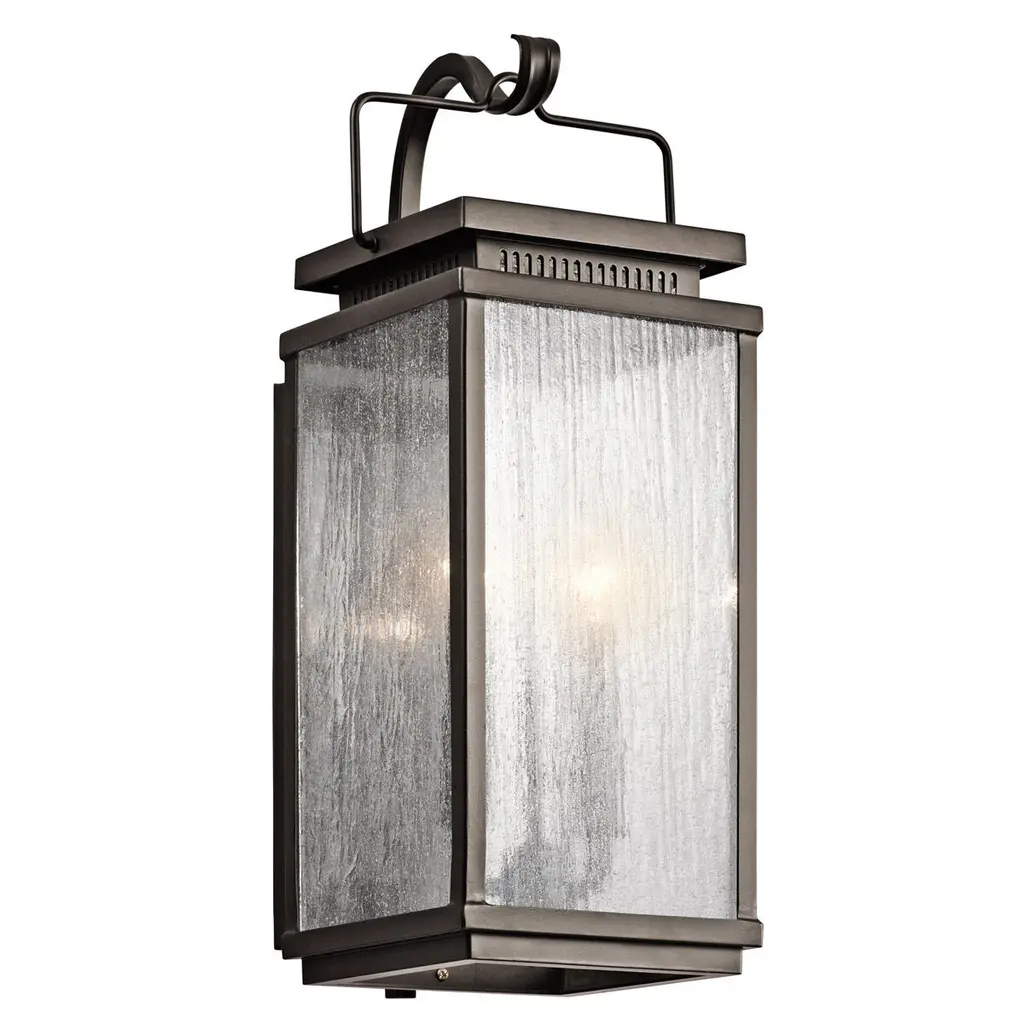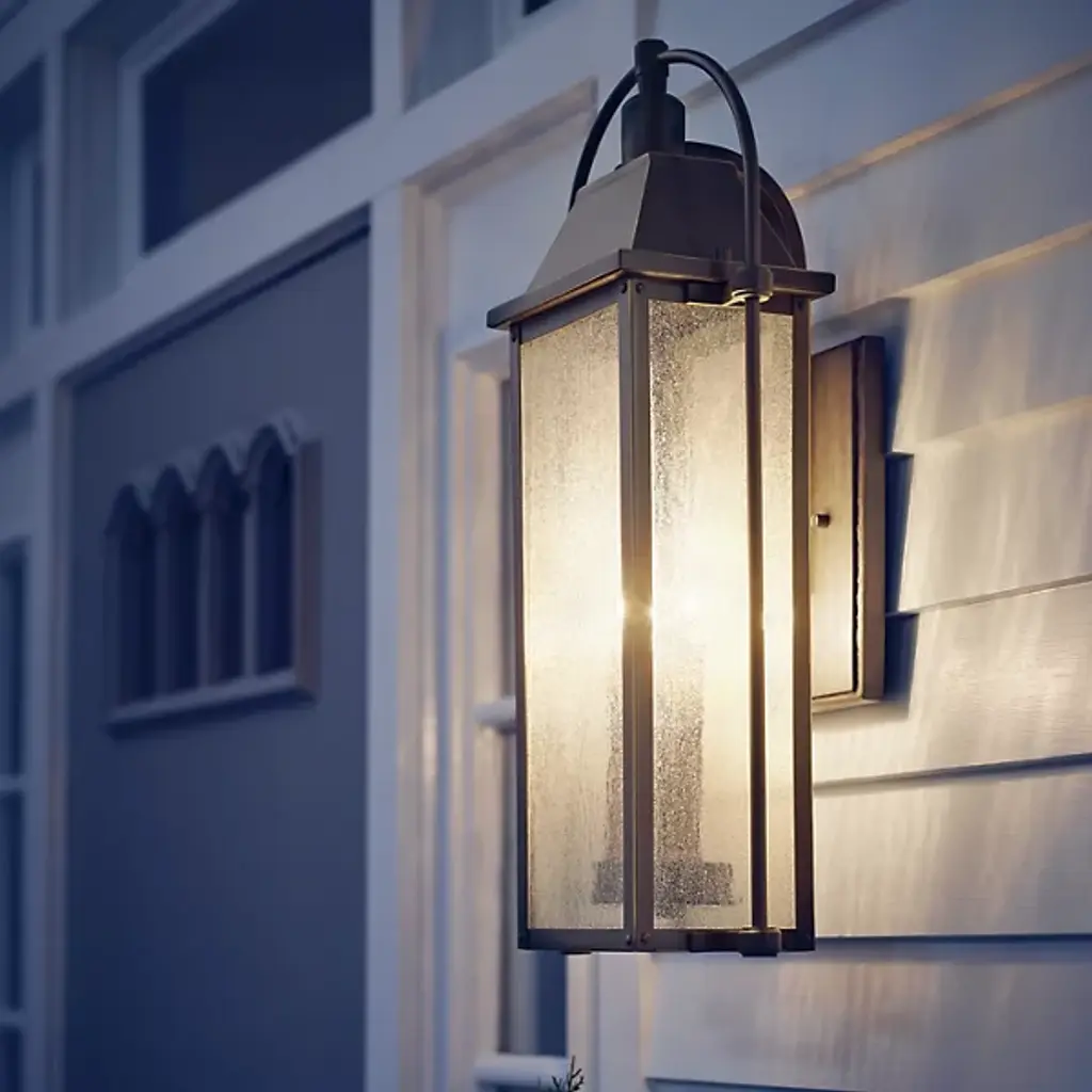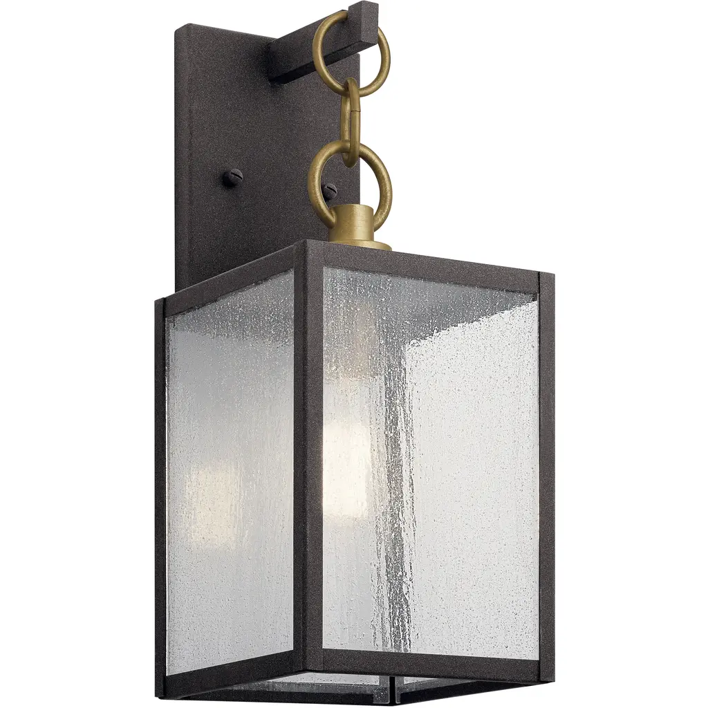 The Harbor Row Outdoor Wall Sconce from Kichler introduces refined arches into traditional lantern design. The detailed roof perches gracefully above seeded glass panels that filter and diffuse light, providing enhanced illumination for outdoor spaces. The wall fixture’s aluminum framework incorporates practical weather protection while maintaining decorative appeal. This sconce brings historically informed design to modern outdoor lighting needs. Its versatile appearance suits various architectural styles while providing reliable exterior lighting.