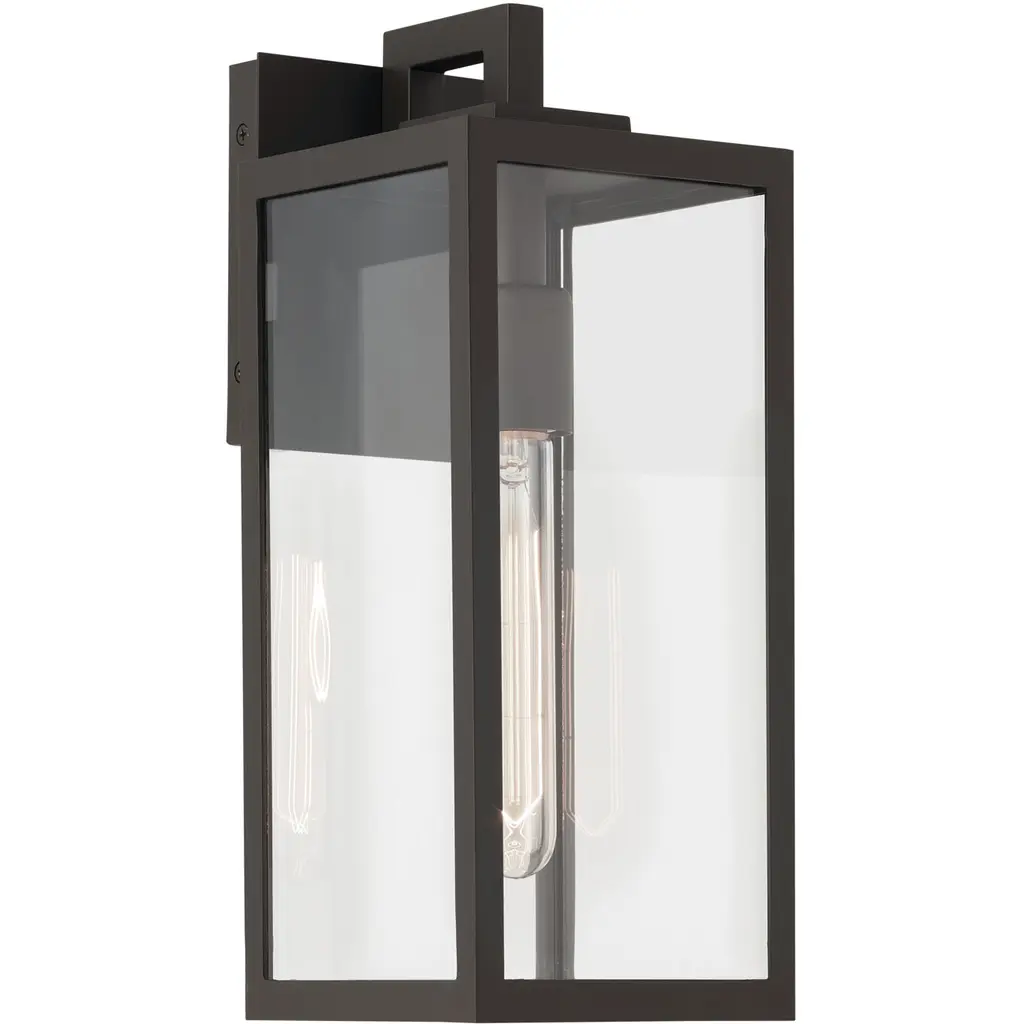 The suspended dual frame creates a rectangular lantern silhouette, and Clear Seedy glass perfectly accents a Coal finish to make Harbor View Collection a great outdoor option for modern contemporary home design. Made of EverPro composite material this collection is well-suited for regions and challenging weather conditions. Including those in coastal climates. Features