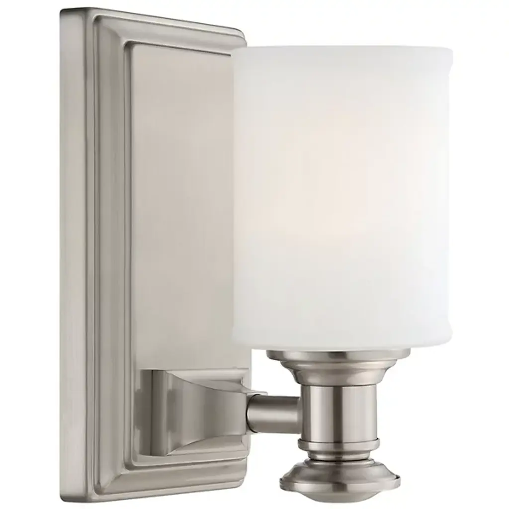 A tastefully finished traditional design, the Minka-Lavery Harbour Point Wall Sconce is a welcoming beacon of style. A cylindrical Etched Opal glass shade is mounted on a tiered support, which is in turn affixed to a similarly tiered wall plate. Straightforward, robust and uncluttered design for transitional interiors.