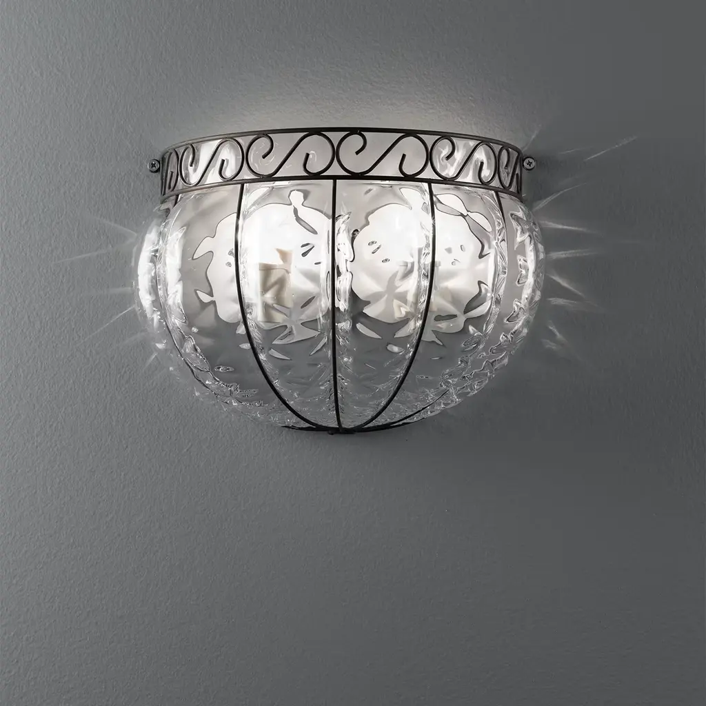 Striking in its antique-inspired elegance, this superb wall lamp will make for an elegant complement to a living environment, emitting a soft diffused light shaped by the texture enhancing the blown glass shade. Completed with a stainless steel frame. Best showcased in a series, please consult the Concierge for further information. Due to handcrafting, slight changes in metal's finish may occur.