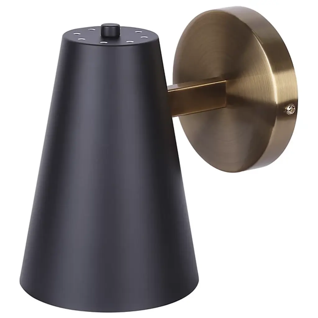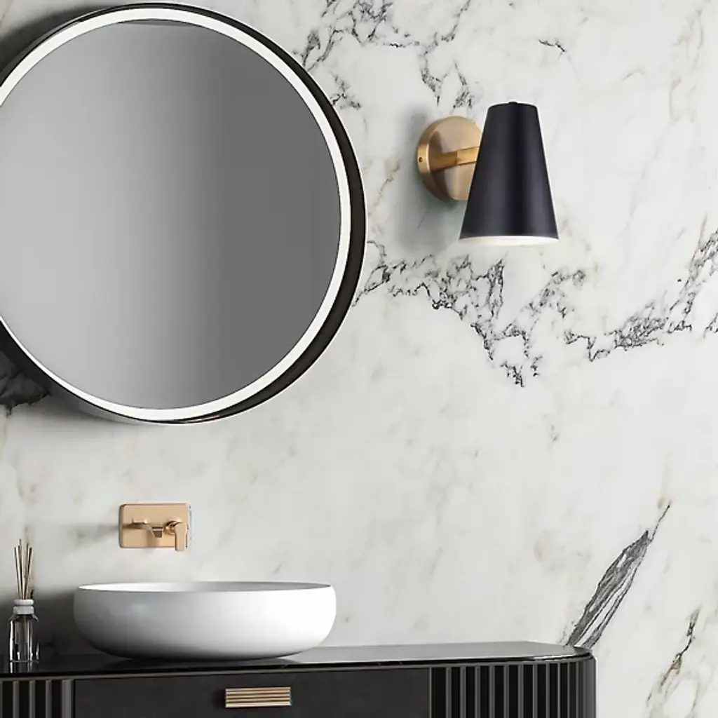 The Harken Wall Sconce from Canarm proves that bathroom lighting can be highly functional and architecturally interesting. The conical shade directs light with precision, while the extended arm provides optimal positioning for vanity tasks. This fixture integrates Easy Connect technology, revolutionizing the installation process for quick and reliable mounting. The metal construction demonstrates superior craftsmanship, with each component precisely engineered to work in harmony. Light flows smoothly from the shade's interior, creating practical illumination for daily grooming routines.