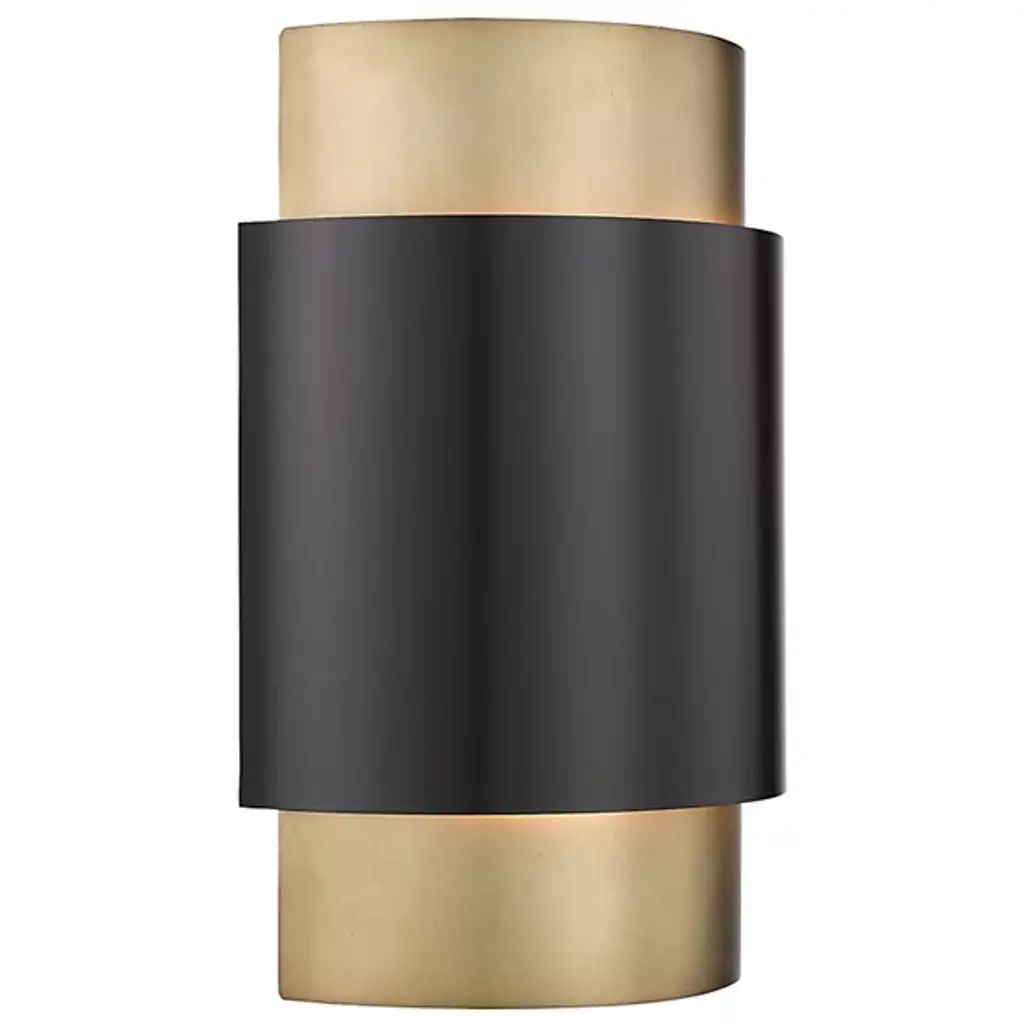 Meticulously crafted from steel, the Harley Wall Sconce from Alder & Ore brings a hint of art deco sophistication to your living space or entryway. Its distinctive drum shade features a slim interior cylinder with a warm rubbed brass finish, beautifully contrasted by a shorter, wider cylinder in a deep bronze finish. This sconce adds refinement without overshadowing your existing decor, making it a delightful and tasteful addition to your space.