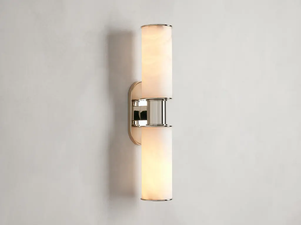 Elevate your bathroom aesthetic with our Arhaus-exclusive Harlin Sconce Collection. Thoughtfully designed to fit any space, this versatile collection is enhanced by the arched details on each racetrack oval backplate, carefully crafted to capture a touch of modern sophistication.