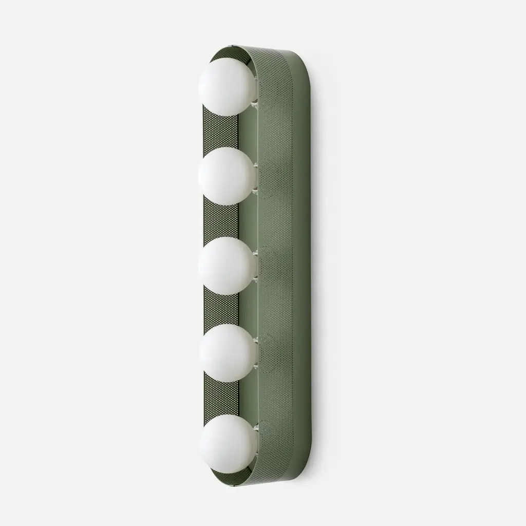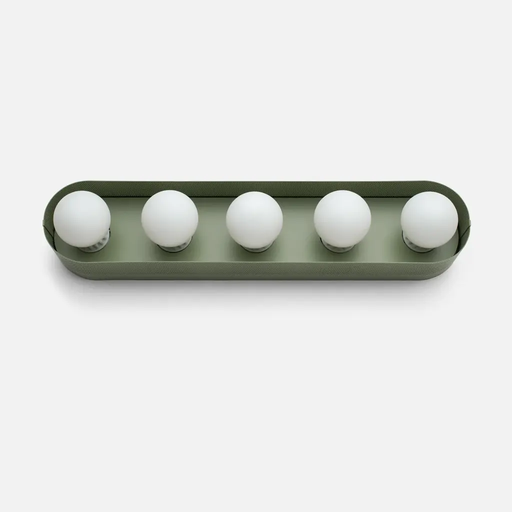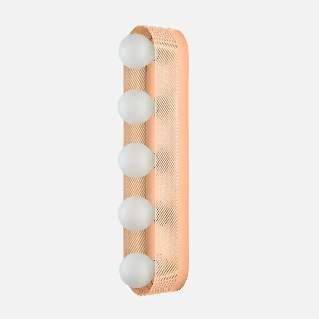 Named after iconic Hollywood actress Jean Harlow, the Harlow 5 Sconce serves as a modern update to the type of multi-bulb vanity fixture that might have illuminated her dressing room. Understated satin finish options complement perforated steel and porcelain sockets. Its unique mounting and wiring system allows for flexible placement over the junction box. Assembled in our Portland, Ore. factory using ethically-sourced domestic and global components. A Schoolhouse Original. Learn how to choose perfect wall sconce placement on our blog.