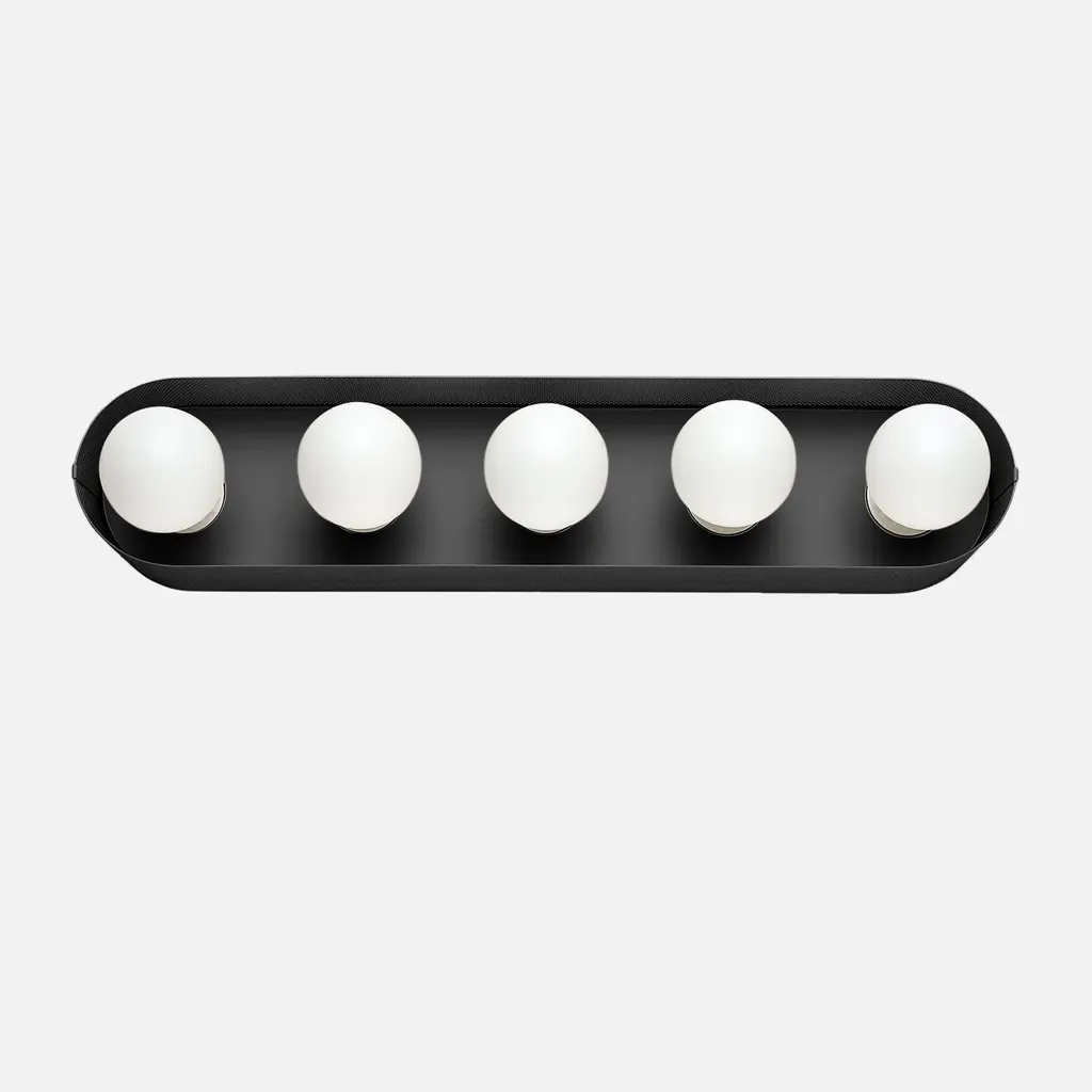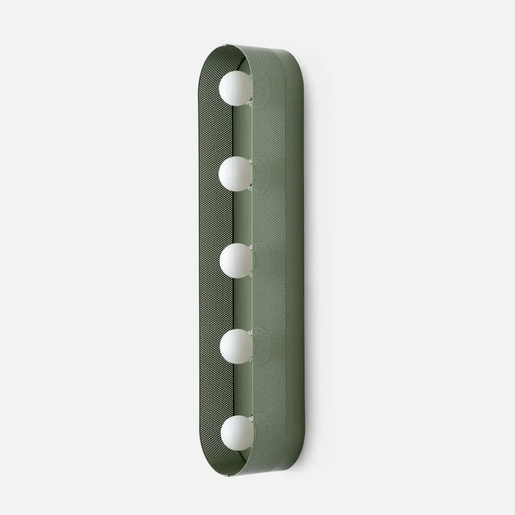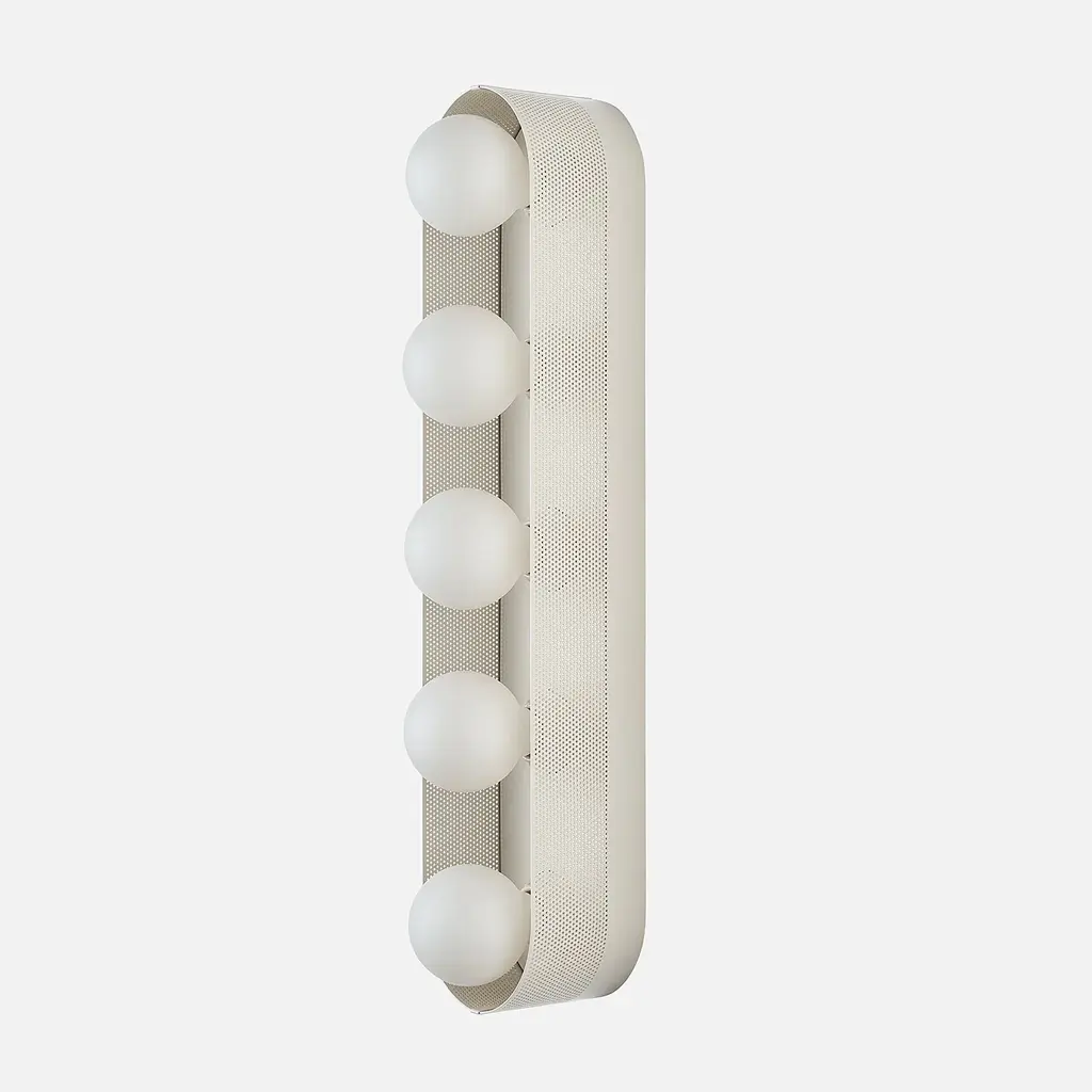 Named after iconic Hollywood actress Jean Harlow, the Harlow 5 Sconce serves as a modern update to the type of multi-bulb vanity fixture that might have illuminated her dressing room. Understated satin finish options complement perforated steel and porcelain sockets. Its unique mounting and wiring system allows for flexible placement over the junction box. Assembled in our Portland, Ore. factory using ethically-sourced domestic and global components. A Schoolhouse Original. Learn how to choose perfect wall sconce placement on our blog.