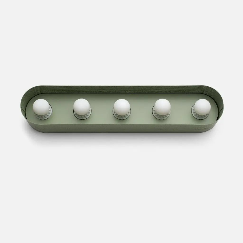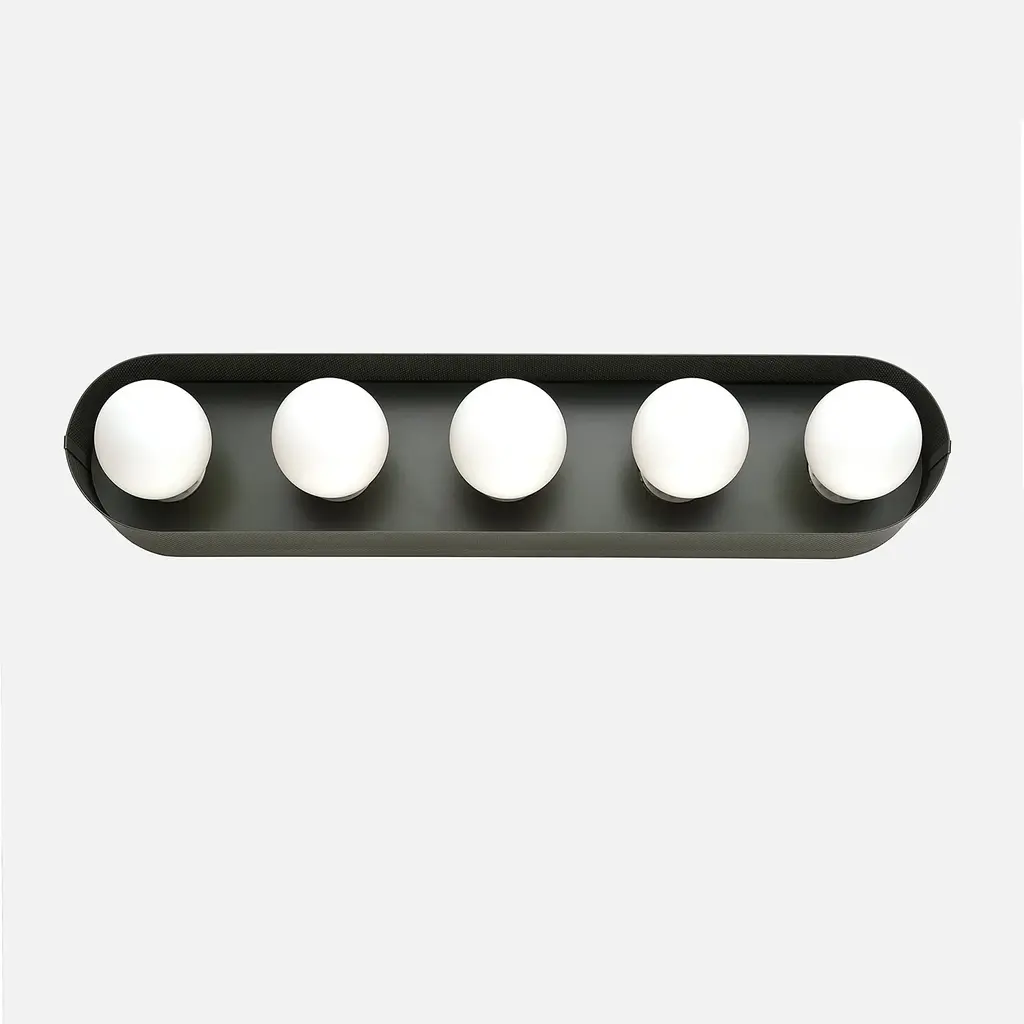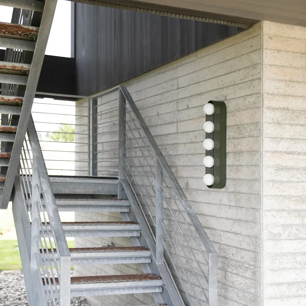 Named after iconic Hollywood actress Jean Harlow, the Harlow 5 Sconce serves as a modern update to the type of multi-bulb vanity fixture that might have illuminated her dressing room. Understated satin finish options complement perforated steel and porcelain sockets. Its unique mounting and wiring system allows for flexible placement over the junction box. Assembled in our Portland, Ore. factory using ethically-sourced domestic and global components. A Schoolhouse Original. Learn how to choose perfect wall sconce placement on our blog.