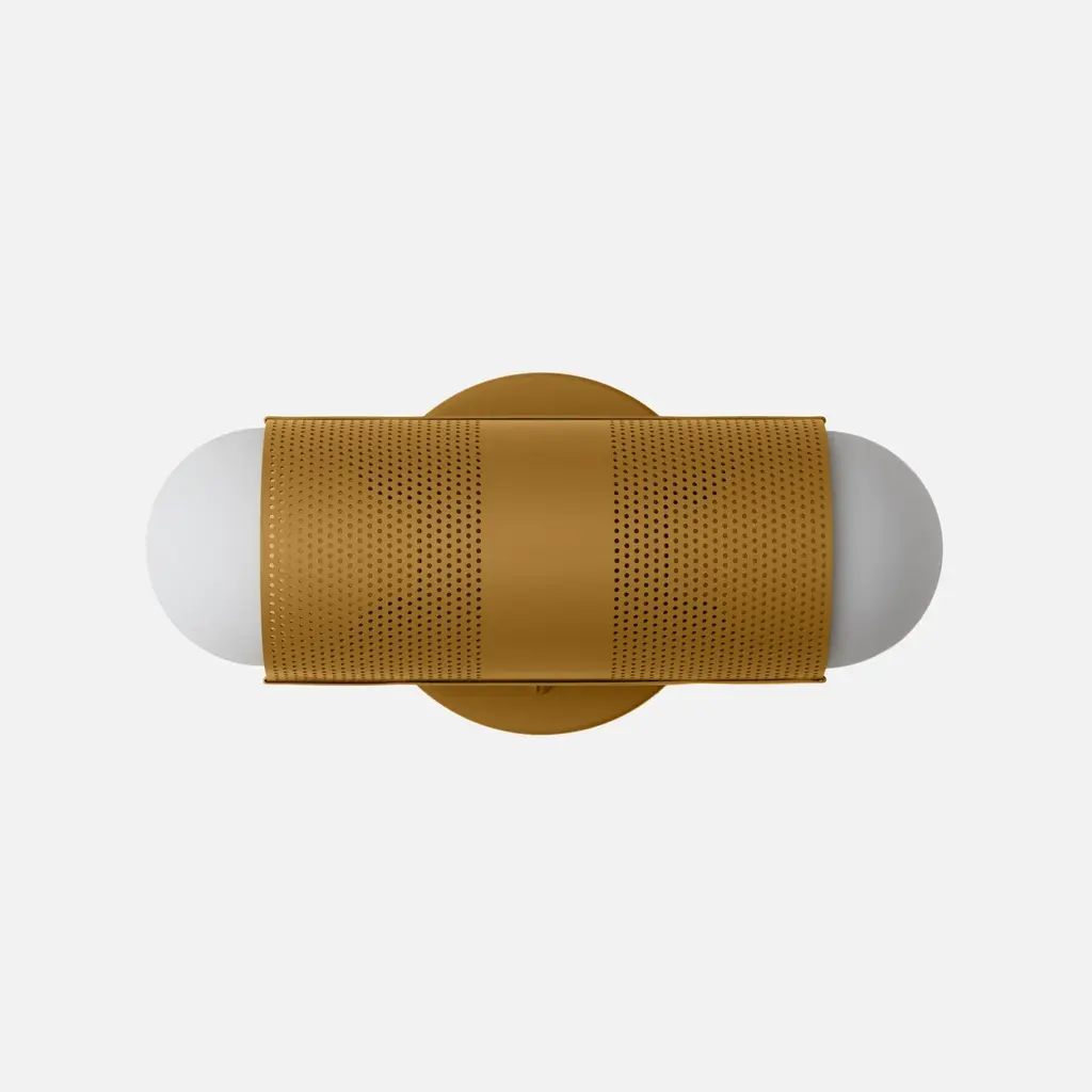 Named for iconic Hollywood actress Jean Harlow, the Harlow Double Sconce draws inspiration from the vanity lighting that may have illuminated her dressing room. An understated satin finish complements the perforated steel, while a two-bulb design provides balanced illumination.