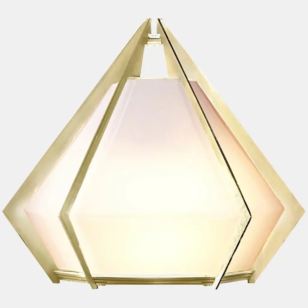 The Harlow LED Wall Sconce from Gabriel Scott enchants modern spaces with a crisp and welcoming glow. Designed by Gabriel Kakon and Scott Richler, this piece is composed of smooth, sharply-angled metal that gently encloses on translucent glass. Inspired by the world of jewelry, this piece resembles an elegant prism filled with life and light. The integrated LED within the shade emits a bright glow that diffuses through the material into a warm and even illumination.