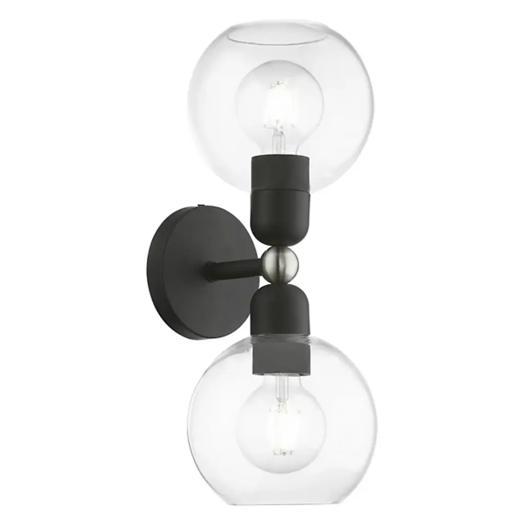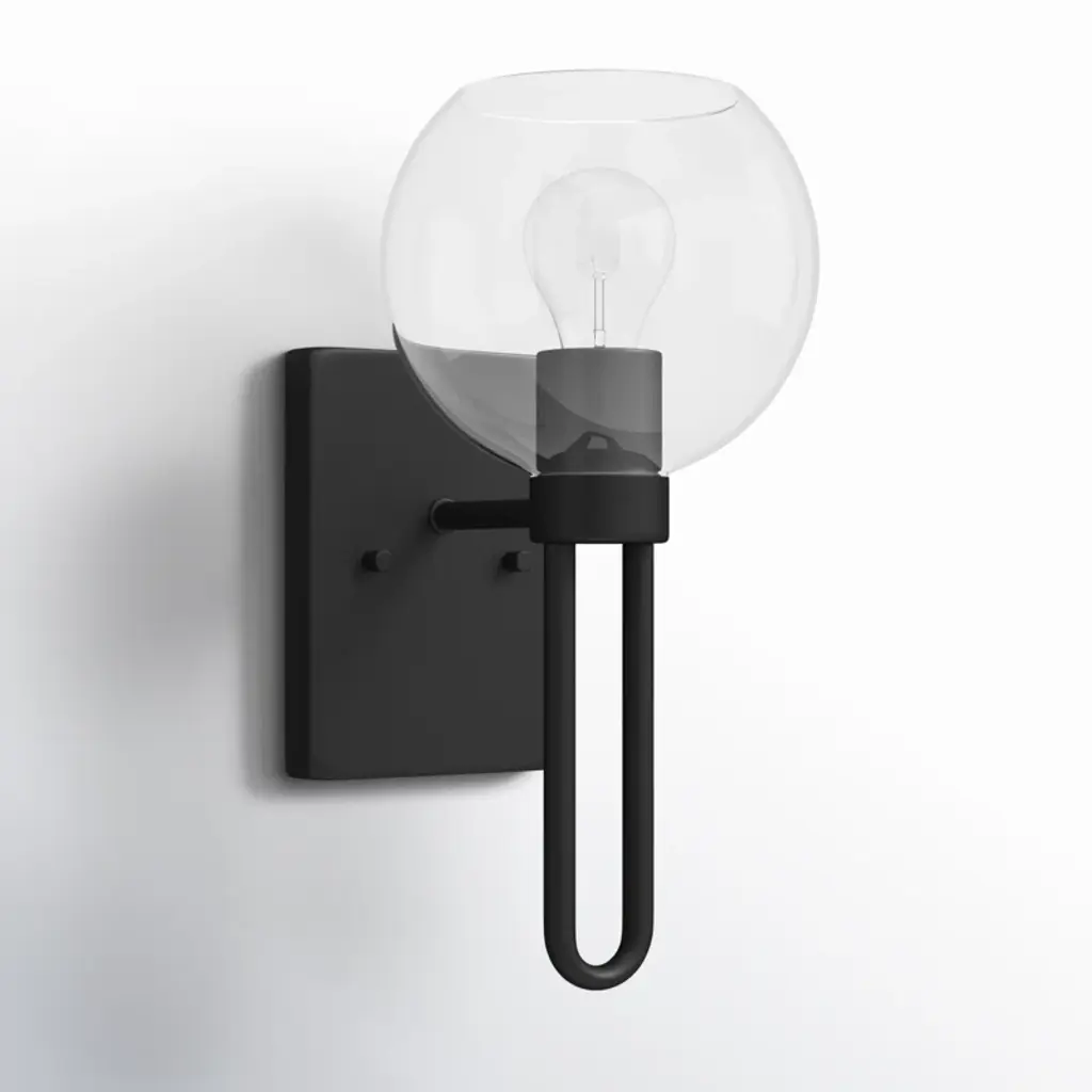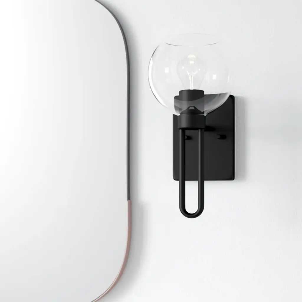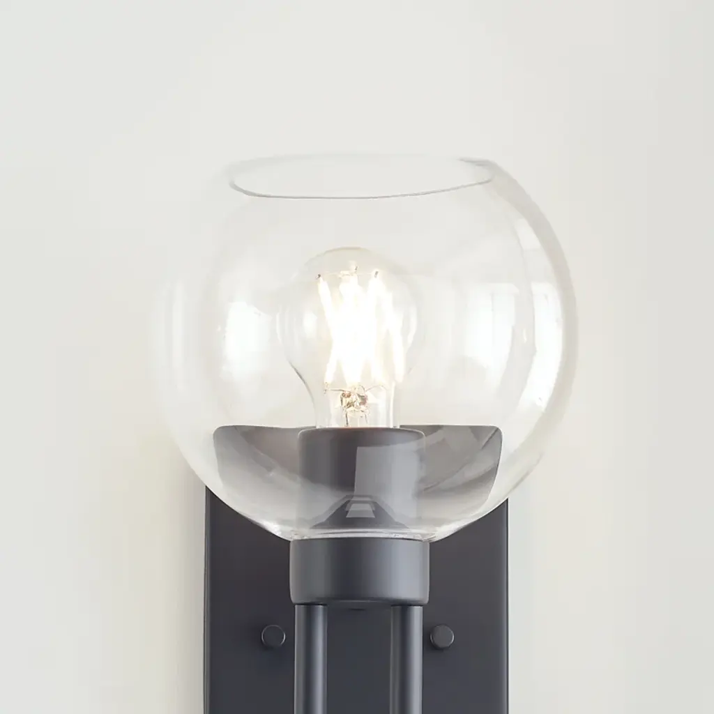 The Harriet one light wall sconce in Brushed Nickel is a contemporary take on a classic mid-century design. Clear glass shades with open-ended spheres accent the elongated keyhole strap detail, for a clean look. This minimalist collection relies on subtle details to create visual interest