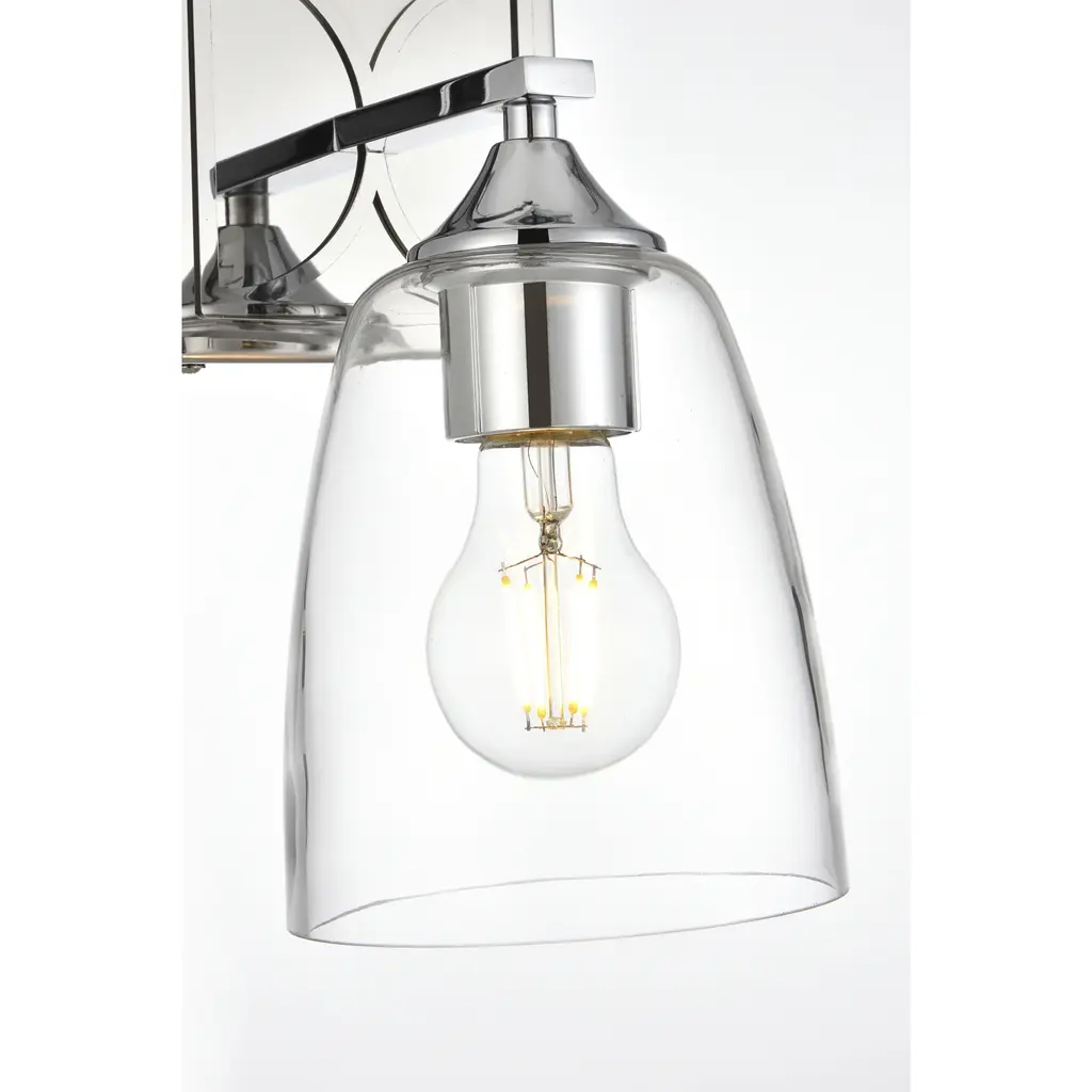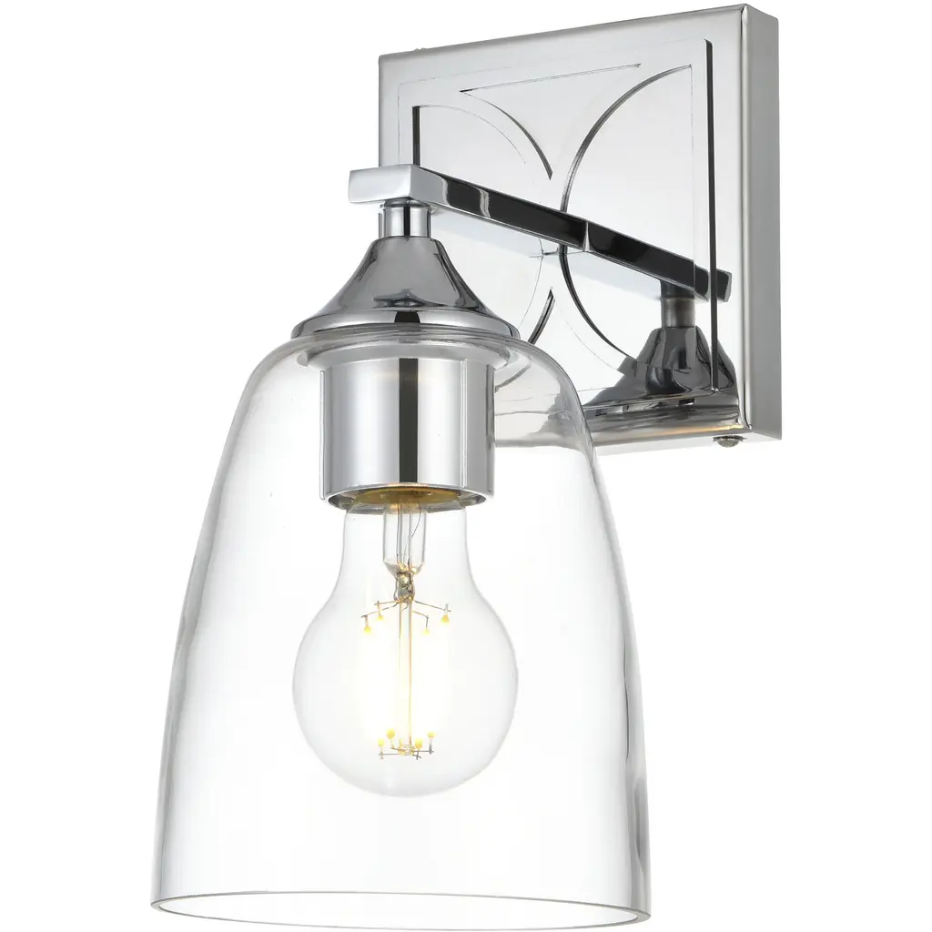 Defined by a sleek metal arm extends to suspend the clear tapered glass shade. A contemporary stunner, it shows off the straight line details from the backplate and the streamline thin metal arm. Compatible with dimmers, so you'll have the right amount of light in any given time of the day. Completely versatile, you can place this wall light as an uplight or downlight. Rated for use in damp locations, this will work perfectly over a vanity in your bathroom.