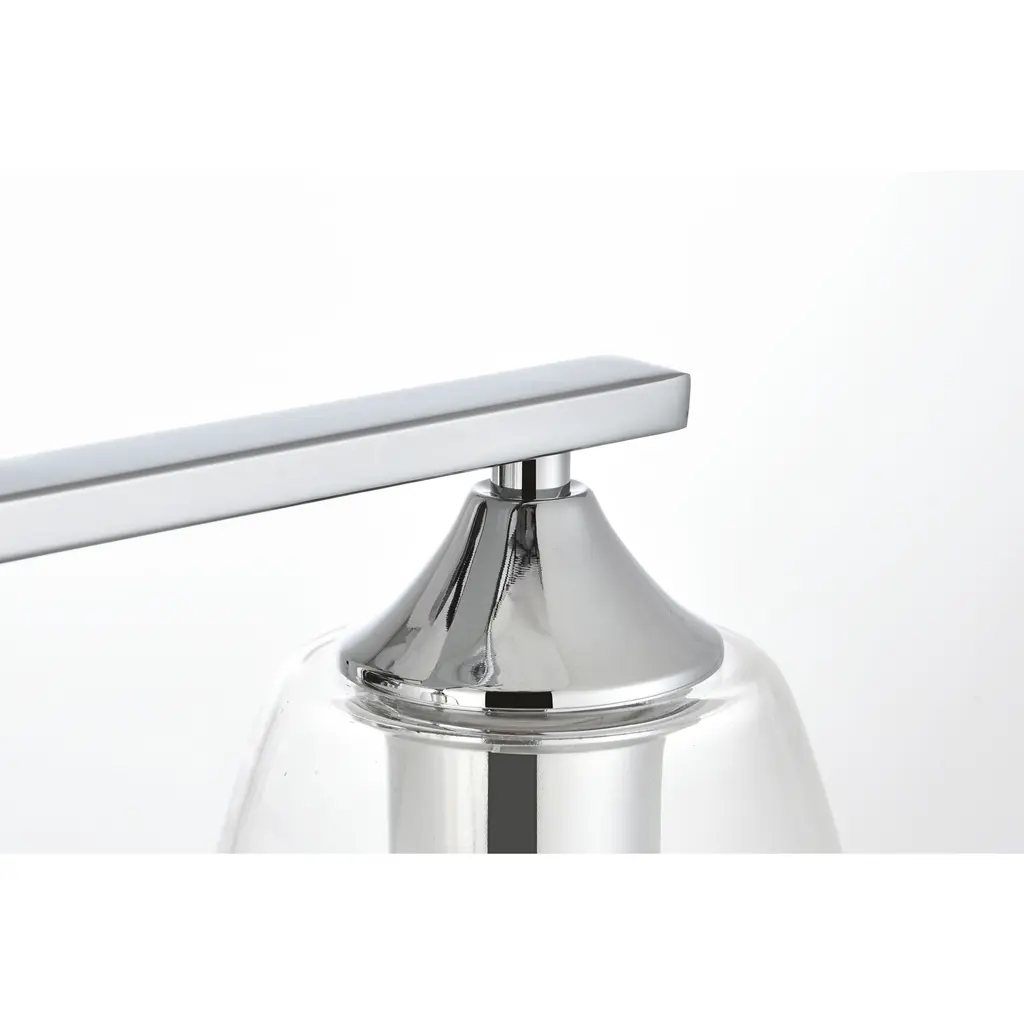 Defined by a sleek metal arm extends to suspend the clear tapered glass shade. A contemporary stunner, it shows off the straight line details from the backplate and the streamline thin metal arm. Compatible with dimmers, so you'll have the right amount of light in any given time of the day. Completely versatile, you can place this wall light as an uplight or downlight. Rated for use in damp locations, this will work perfectly over a vanity in your bathroom.