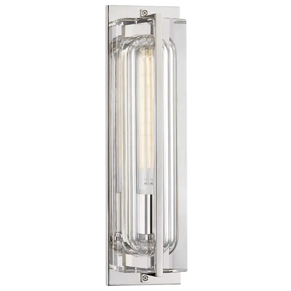 Brilliant design in an exquisite case. Using the frame and diffuser to create intricate layers, the Hawkins Wall Sconce by Hudson Valley simply won’t let you look away. Inside the Metal frame, high-quality Crystal surrounds the tubular bulb and Glass shade. The combination of materials creates tremendous depth and variation within the rectangular body. The clear components are accented by a thin Metal bar that runs down the center of the piece. A clever compilation of elements and shapes, perfectly formed into one stunning fixture.