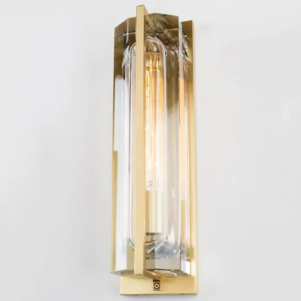 Brilliant design in an exquisite case. Using the frame and diffuser to create intricate layers, the Hawkins Wall Sconce by Hudson Valley simply won’t let you look away. Inside the Metal frame, high-quality Crystal surrounds the tubular bulb and Glass shade. The combination of materials creates tremendous depth and variation within the rectangular body. The clear components are accented by a thin Metal bar that runs down the center of the piece. A clever compilation of elements and shapes, perfectly formed into one stunning fixture.