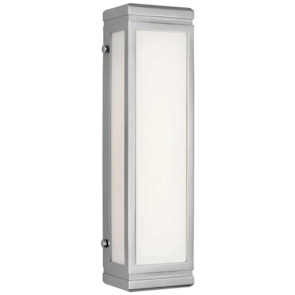 A subtle modern design accented by rich retro lines, the Hayles LED Bath Sconce from Visual Comfort presents a stately transitional appeal to wall spaces. Designed by Ralph Lauren, its rectangular brass form conceals ADA-compliant and damp-rated lamping beneath translucent panes of glass that lend the piece a lantern-like look. Excellent as a single installation or matched on either side of a bathroom mirror, the even glow that emanates from the sconce creates a captivating, gentle glow that is still wide-reaching enough for task use.