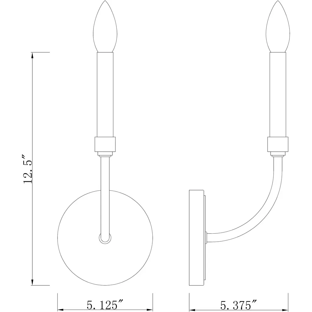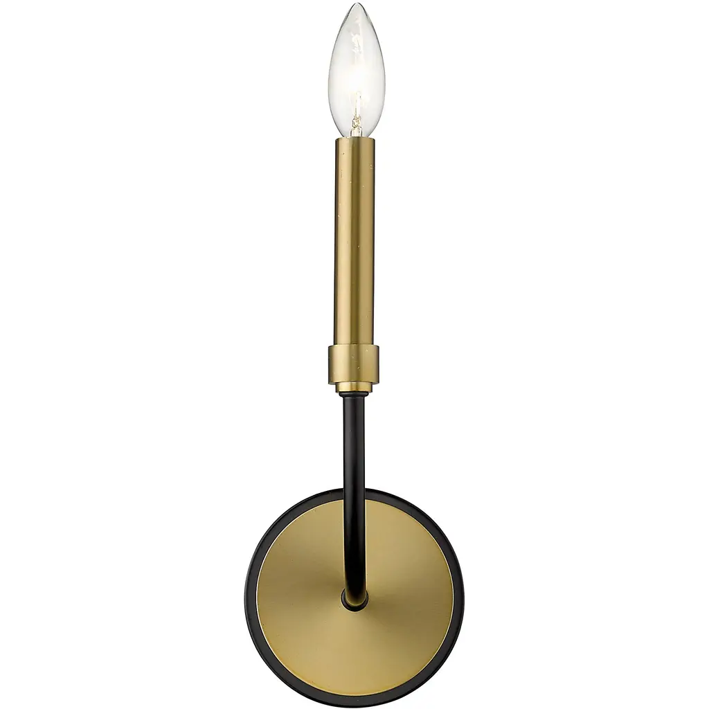 Add this warm two-tone one-light wall sconce to your favorite space for simple elegance. It's crafted in a classic matte black and olde brass finish with the light in a candle-like design. It's a richly-toned understated design perfect for the bathroom, powder room, hallway, or bedroom.