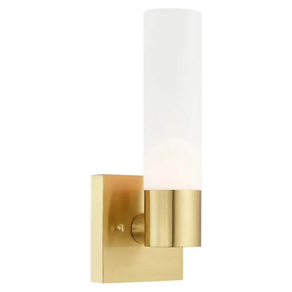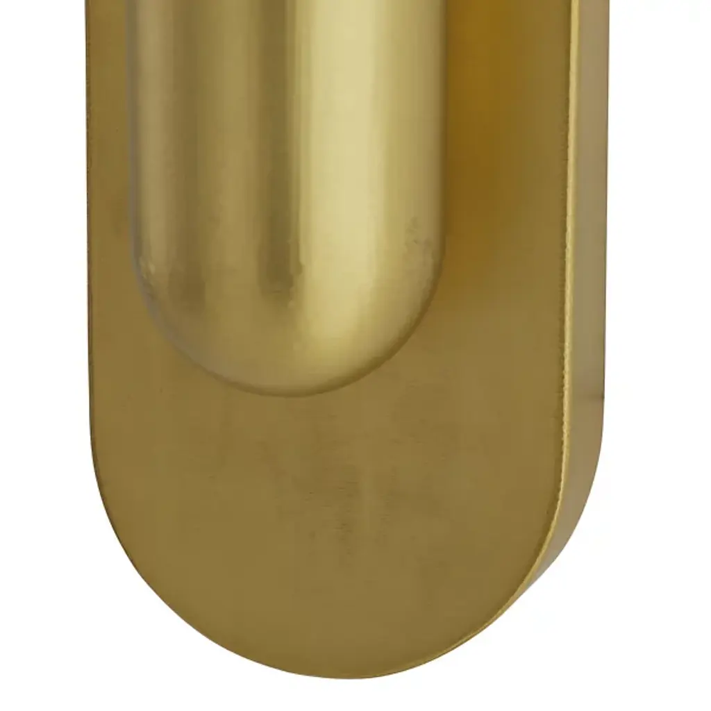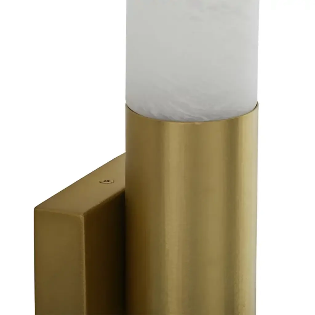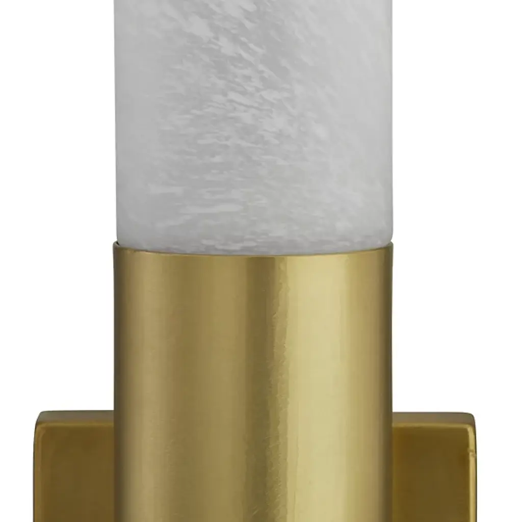 The Haynes LED Wall Sconce from Arteriors makes a confident statement with its spear-shaped backplate and streamlined design. The steel construction supports an alabaster shade that can be mounted to direct light upward or downward, offering flexibility in installation. This integrated LED fixture brings a substantial presence to hallways and bathrooms while maintaining clean lines. Its versatile scale works equally well as a single accent or paired in multiples along a corridor. Suitable for covered outdoor spaces, this sconce adds character to both contemporary and mid-century modern interiors.