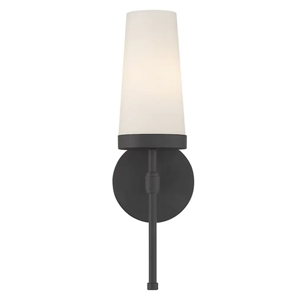 The Haynes Wall Sconce by Savoy House adds a touch of transitional refinement beside your bed or favorite reading nook. This light fixture features a vertical arm that’s secured by a round metal backplate. At the end, a tapered rectangle shade of white opal glass tempers the light of an LED. The soft, ambient glow is suited for illuminating bedside tables or flanking a sofa. This wall sconce brings a sophisticated aesthetic to your décor.