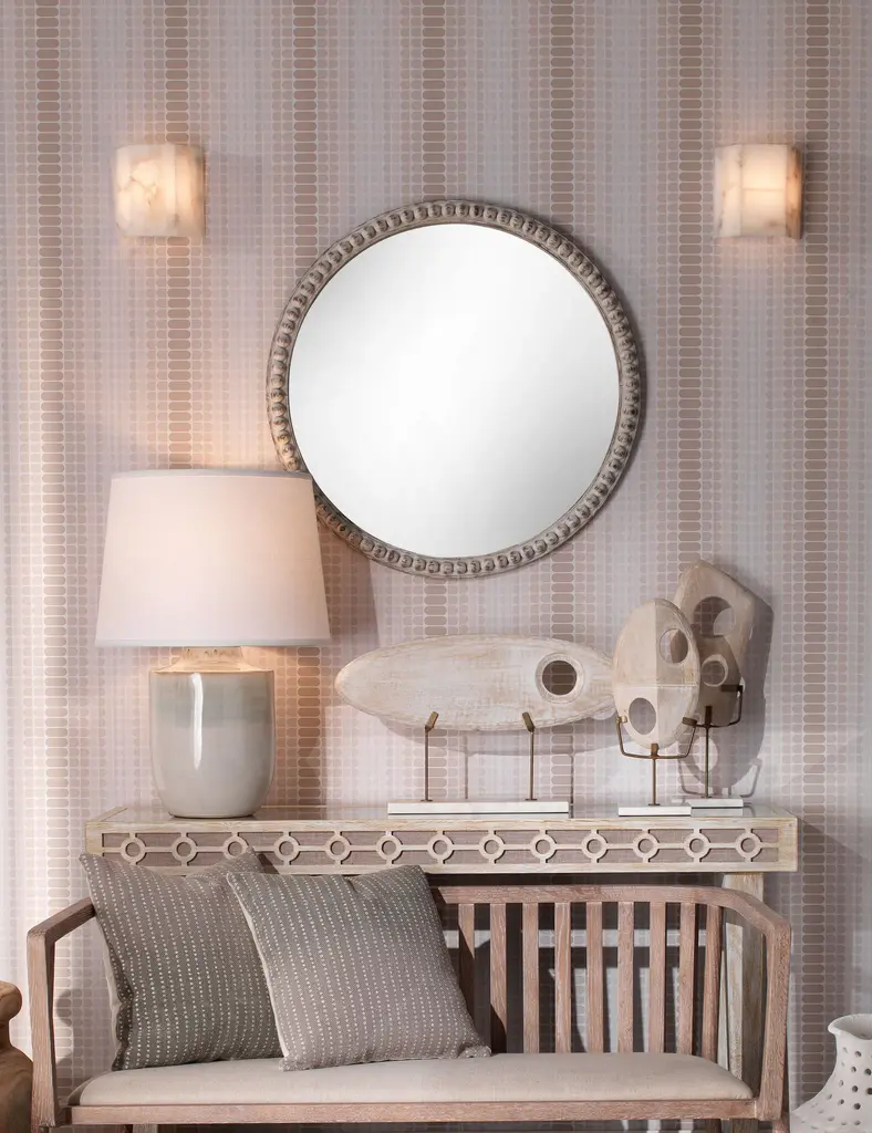 Hazen balances refined geometry with the timeless drama of natural stone. This sconce light is hand-carved from alabaster, showcasing mineral veining that diffuses the light with elegance. Try this sconce in a bathroom or hallway for a soft, architectural glow.