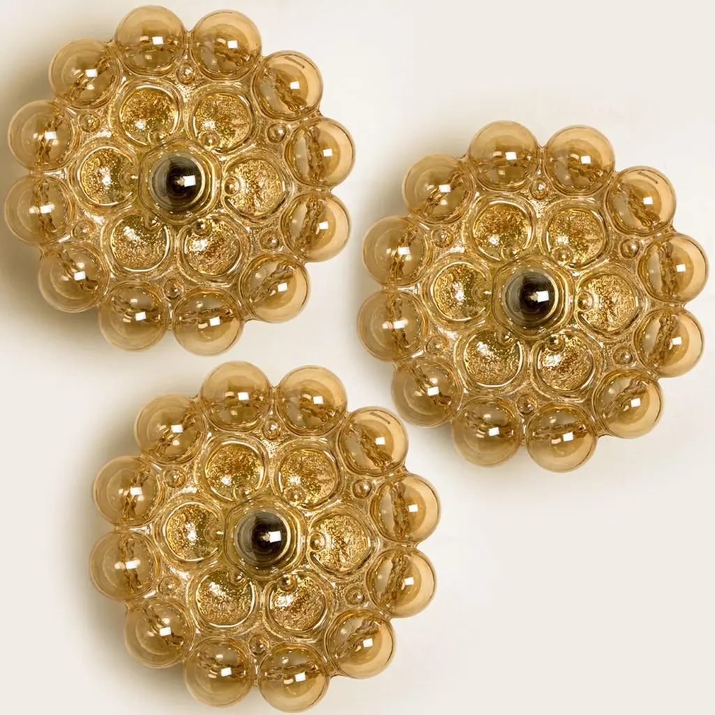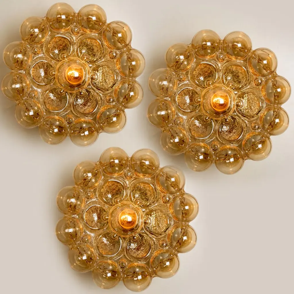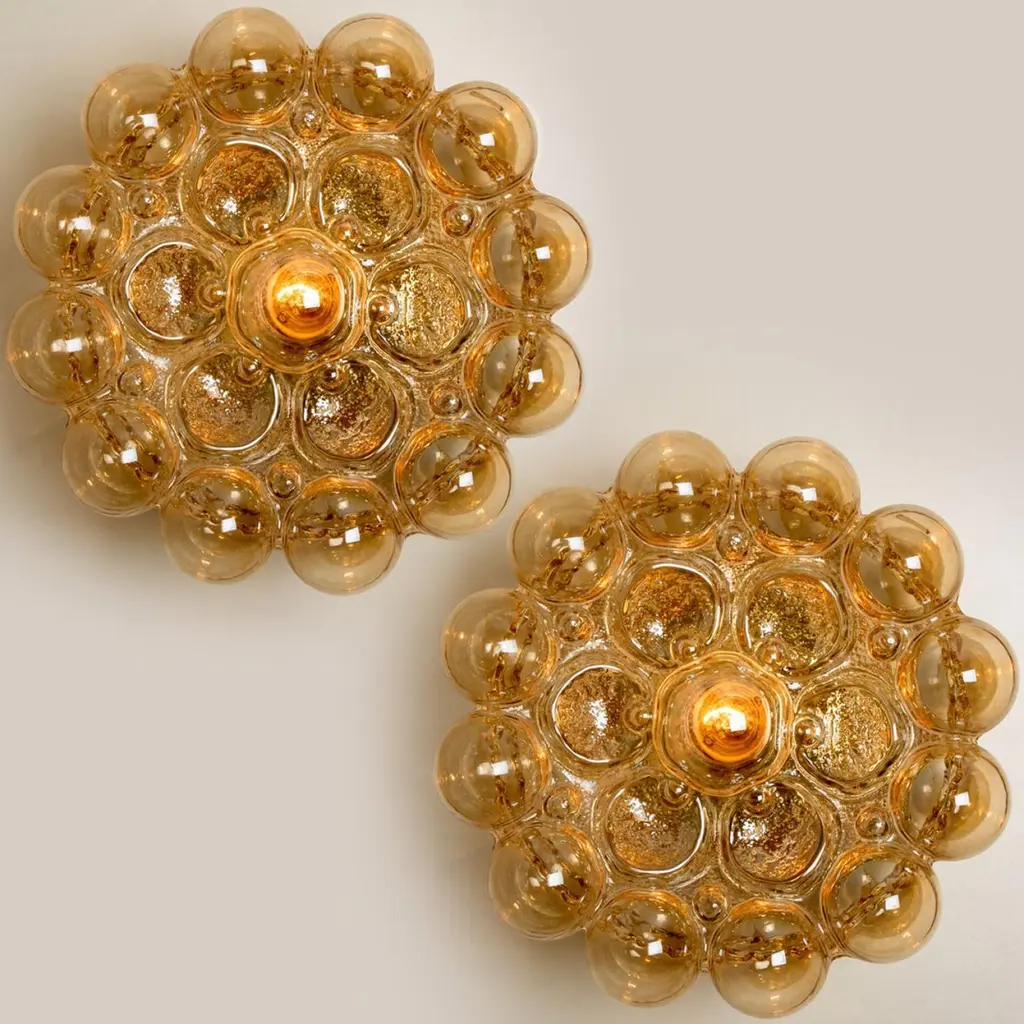 Helena Tynell Amber Bubble Flush Mounts Or Wall Sconces, 1960s