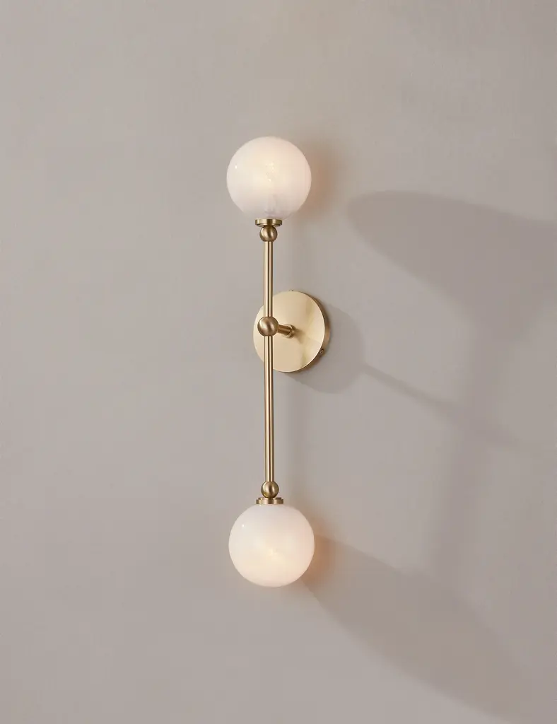 Slim, streamlined, and utterly modern, this globe sconce light is set for chic appeal. The glass shades feature etched detailing to create subtle striations when lit. We love this sconce for adding polish to a refined aesthetic.