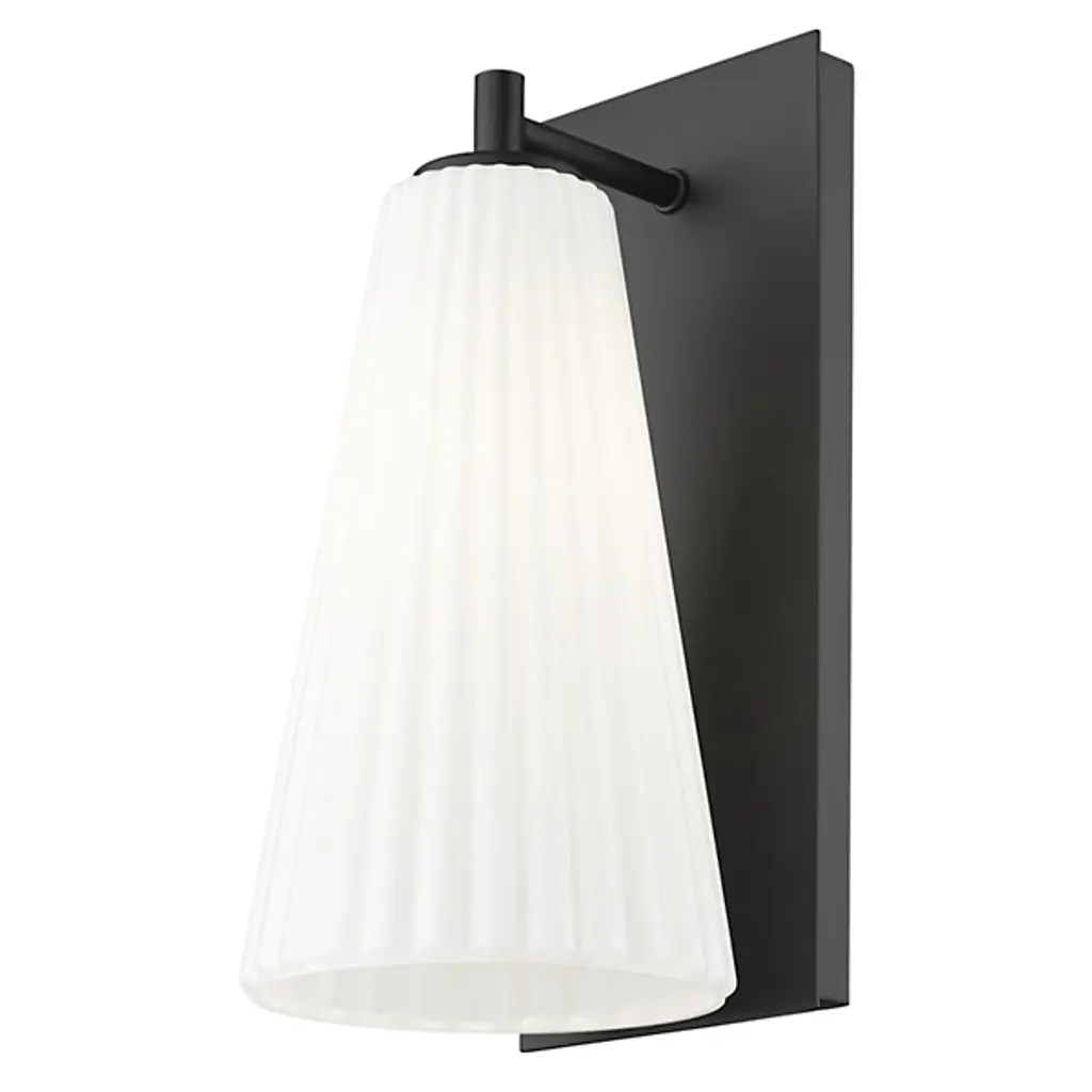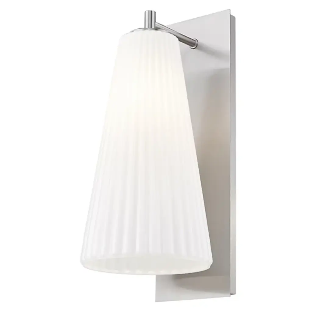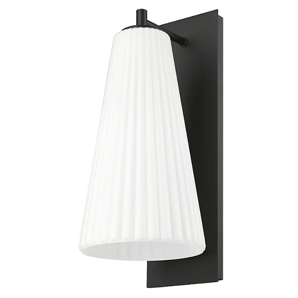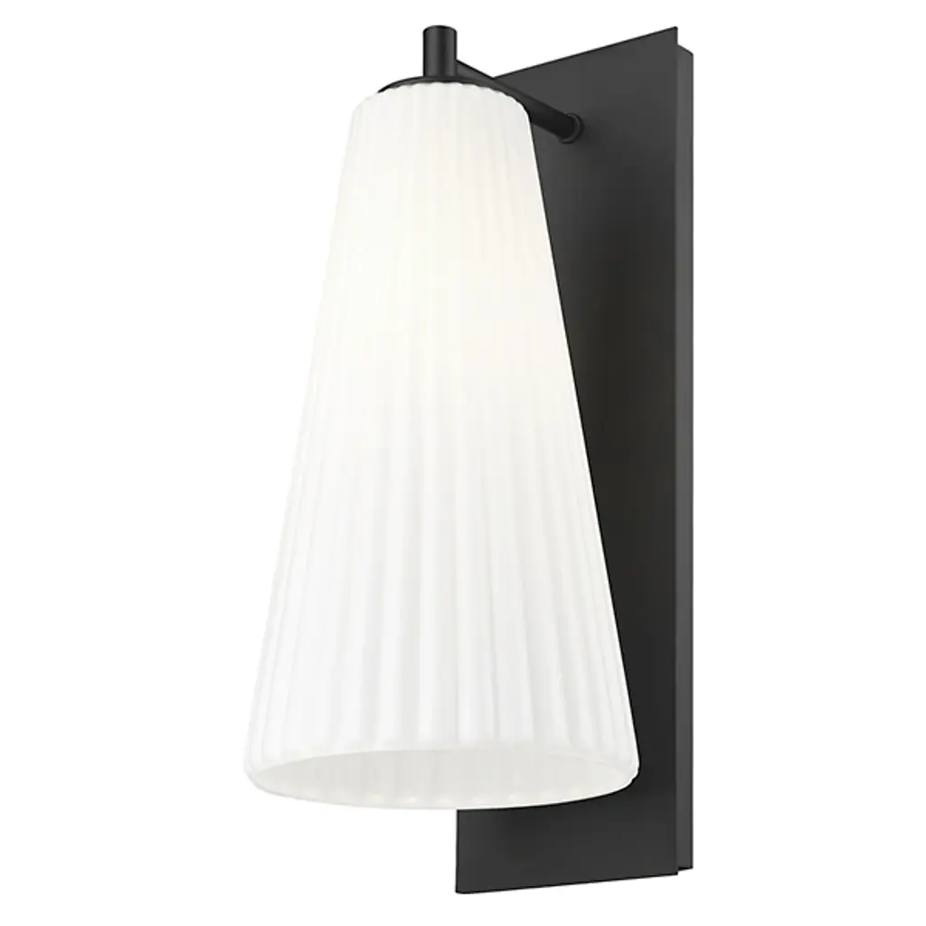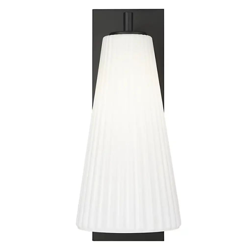 The Hendricks Wall Sconce from Alder & Ore (Z-lite) is a sight to behold. The elongated, fluted glass shade stands proud against its steel frame, creating a bold contrast. Light filters through the frosted, ribbed glass, creating a soft glow, perfect for setting a warm, inviting atmosphere in any room. The vertical orientation of the sconce draws the eye upward, making it an excellent choice for visually expanding smaller spaces or accentuating high ceilings.