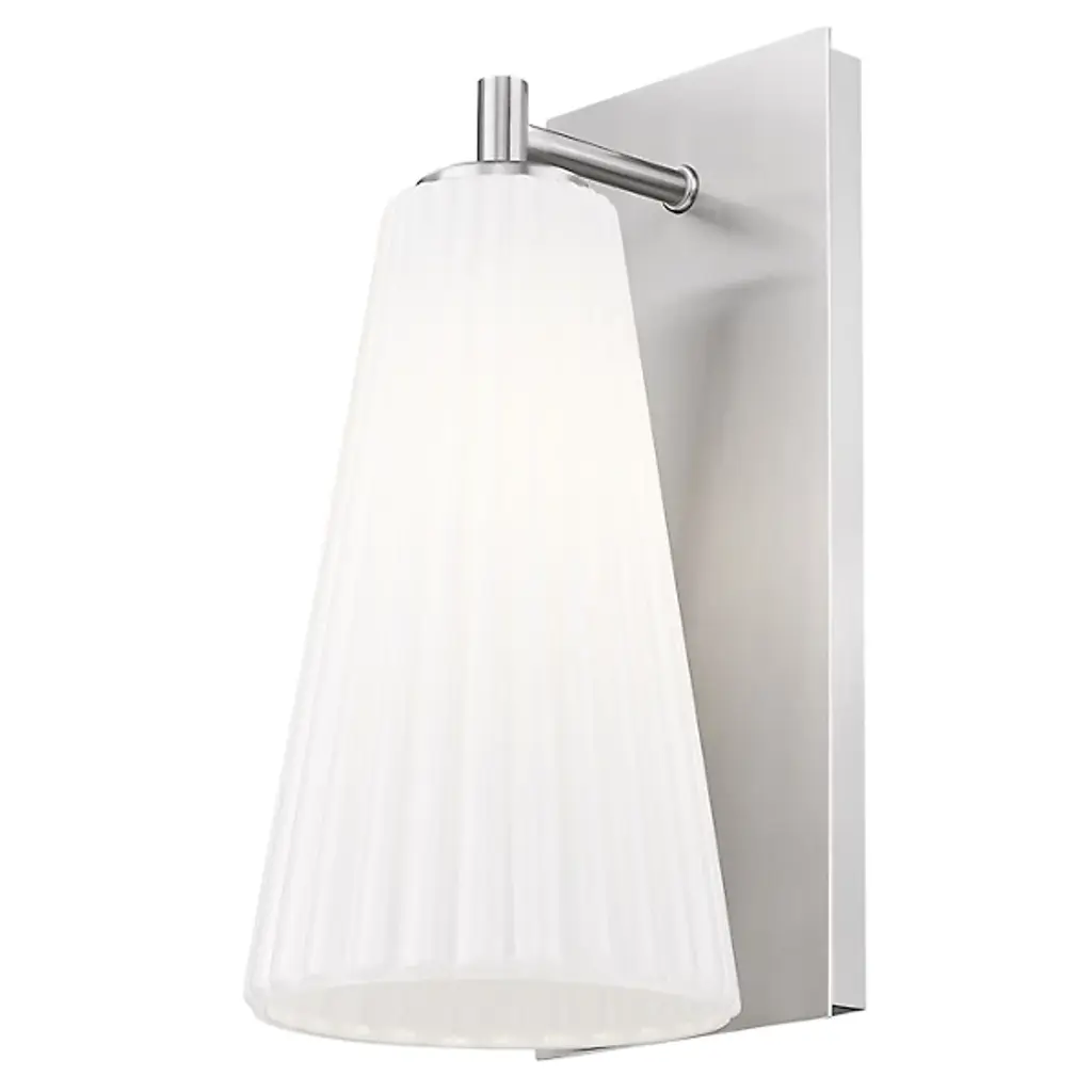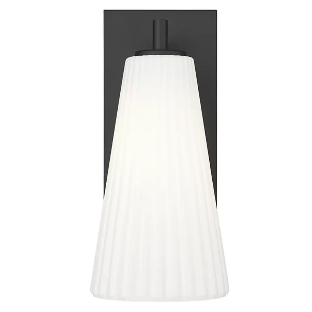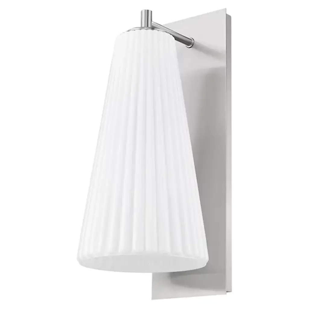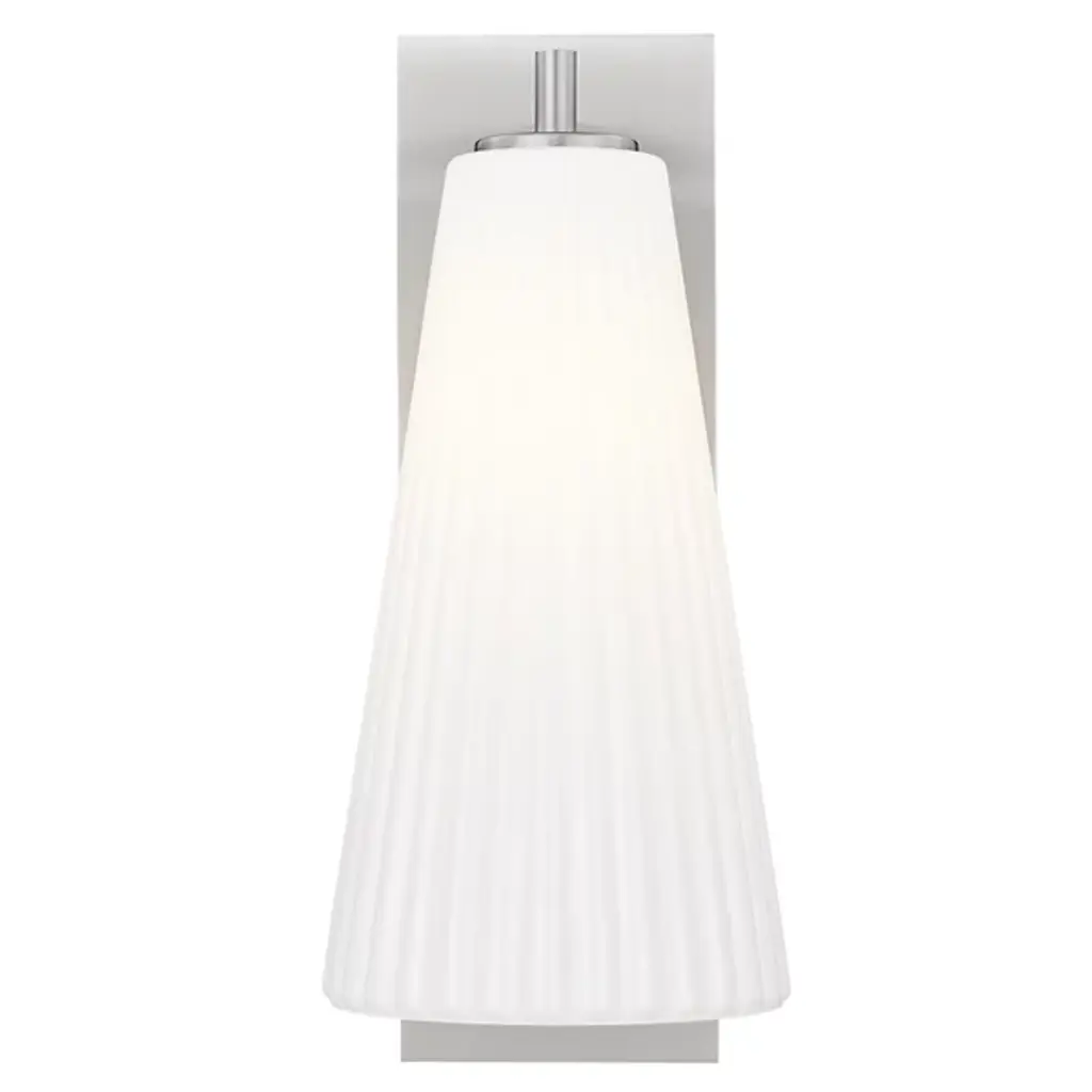 The Hendricks Wall Sconce from Alder & Ore (Z-lite) is a sight to behold. The elongated, fluted glass shade stands proud against its steel frame, creating a bold contrast. Light filters through the frosted, ribbed glass, creating a soft glow, perfect for setting a warm, inviting atmosphere in any room. The vertical orientation of the sconce draws the eye upward, making it an excellent choice for visually expanding smaller spaces or accentuating high ceilings.