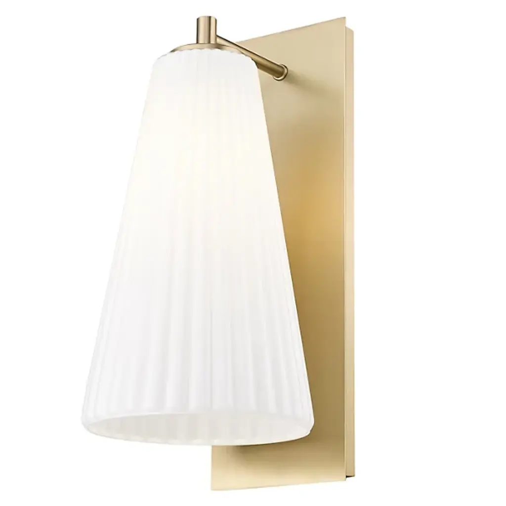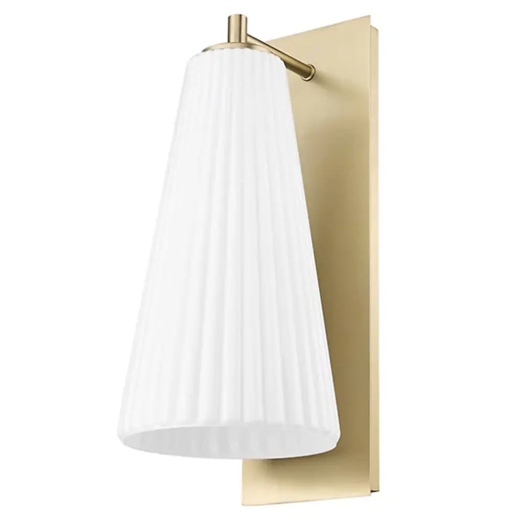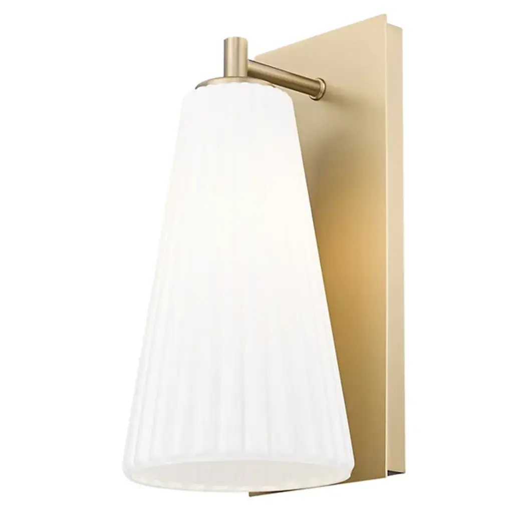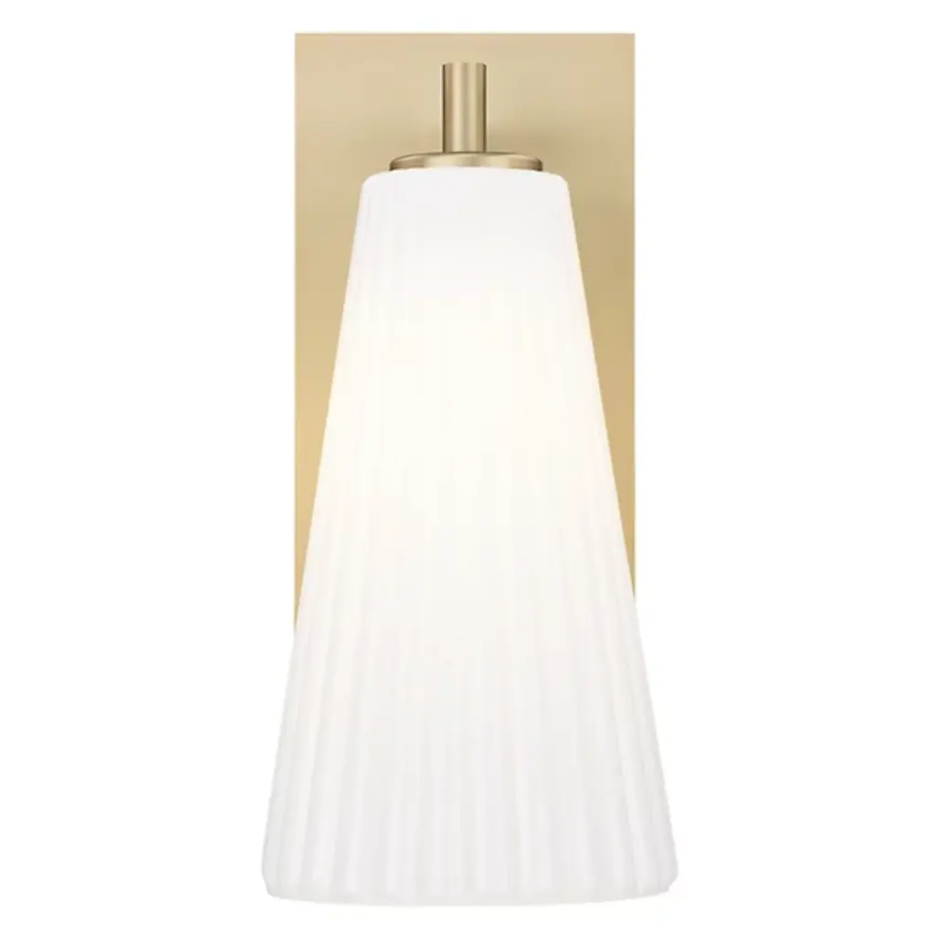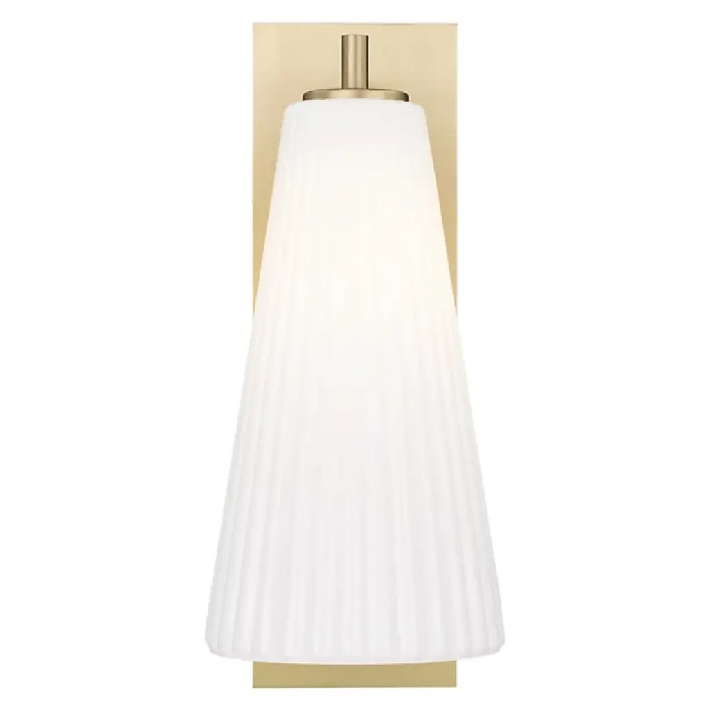 The Hendricks Wall Sconce from Alder & Ore (Z-lite) is a sight to behold. The elongated, fluted glass shade stands proud against its steel frame, creating a bold contrast. Light filters through the frosted, ribbed glass, creating a soft glow, perfect for setting a warm, inviting atmosphere in any room. The vertical orientation of the sconce draws the eye upward, making it an excellent choice for visually expanding smaller spaces or accentuating high ceilings.