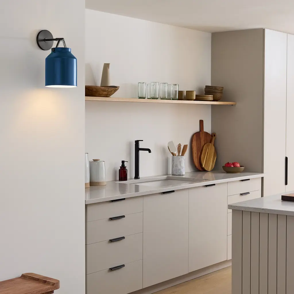 Designed by you: pick your shade type and finish. Sleek and understated with subtle angular details. Damp rated, so it can go in the bathroom, too. Contract Grade, so you know it's built to last.