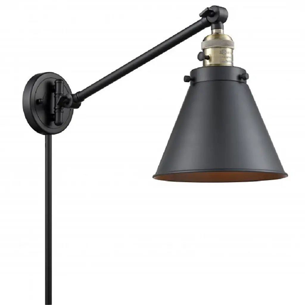 Our Henry Wall Sconce with its brass-riveted, spun-metal shade and stark design delivers a strong industrial vibe. A close look will reveal a level of craftsmanship beyond the norm. Hand-crafted by artisans here at our Vermont forge each piece is unique.Requires 1 x 60 watt A-19 E26 medium Incandescent bulb(s)(Not Included).All Hubbardton Forge products are hand-crafted to last one at a time in Vermont and backed by a Lifetime Limited Warranty.