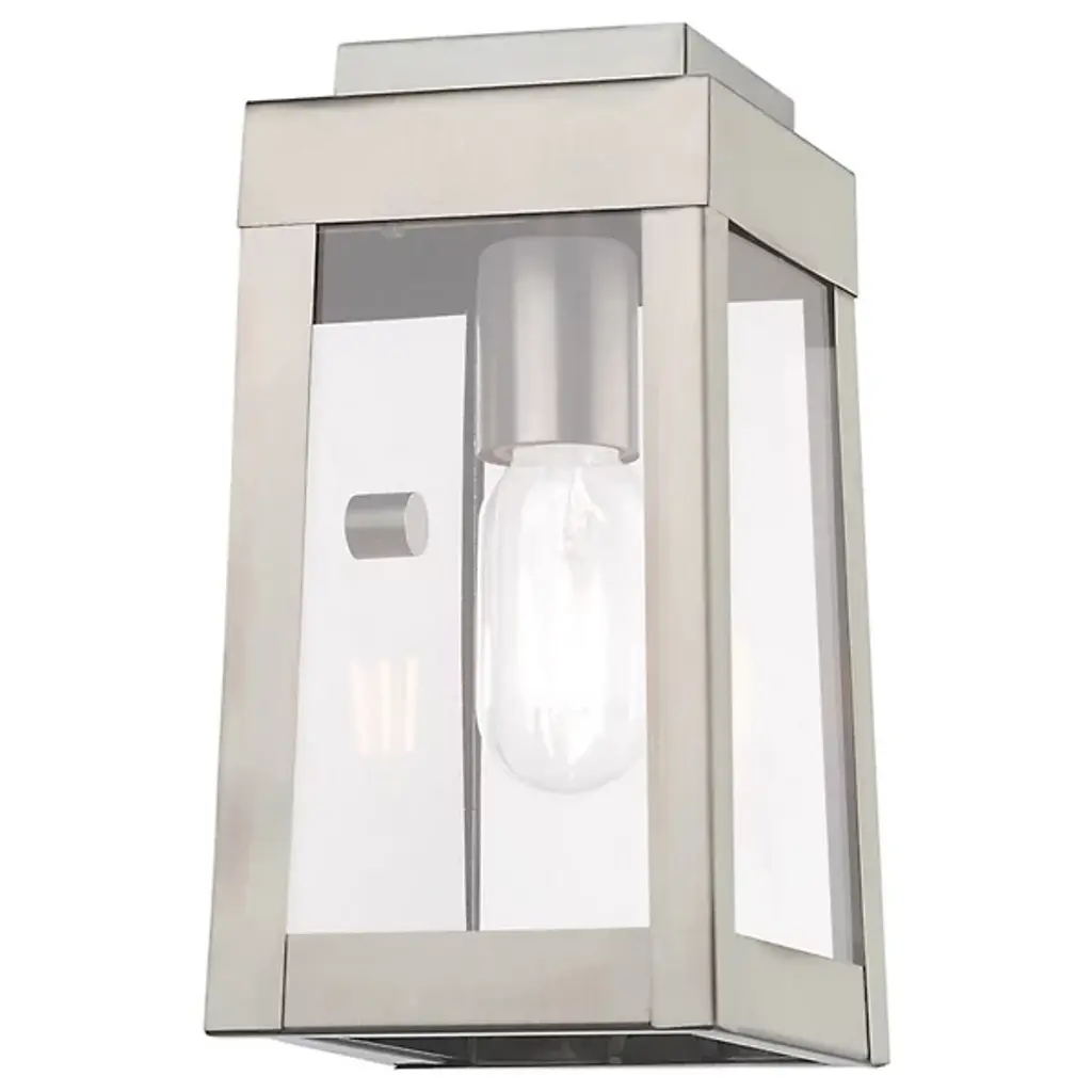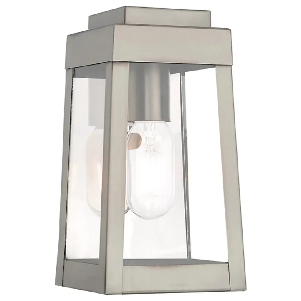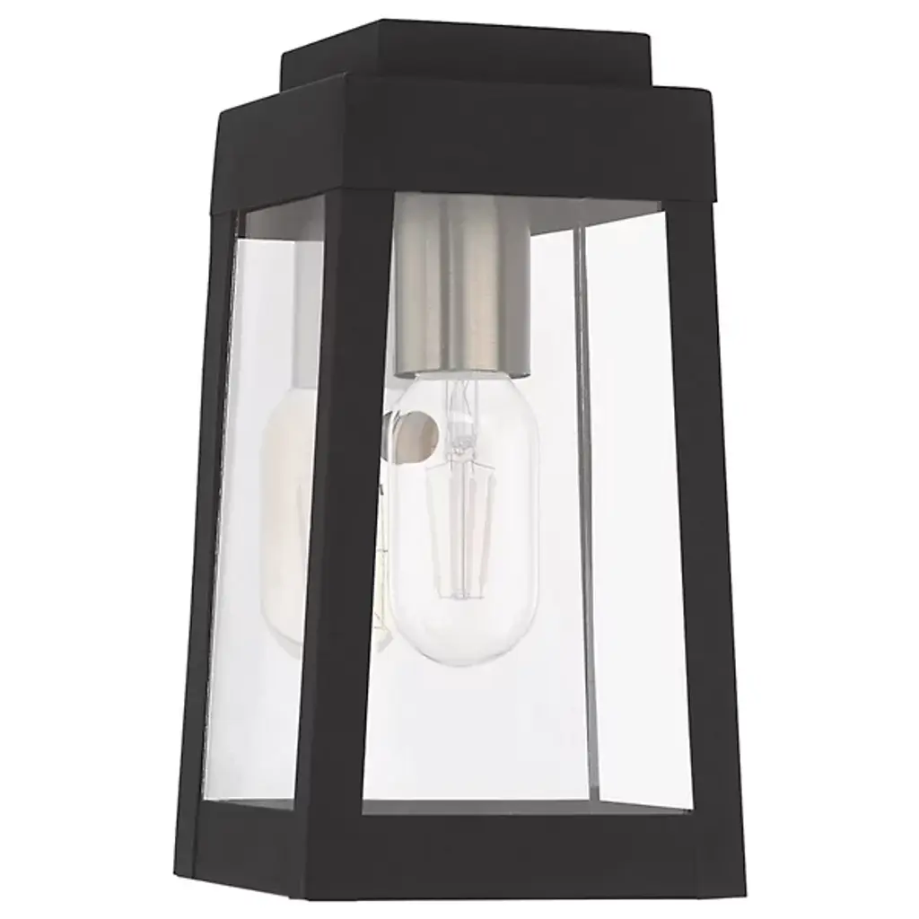 Elevate your home exterior’s key architectural features with the dapper design of the Henry Single Light Outdoor Wall Sconce from Alder & Ore. The sconce evokes the familiar lantern with an industrial edge. It mounts securely to the wall with a low-profile backplate. The metal structure proves durable throughout the seasons. It presents a bold, graphic silhouette as a tapered rectilinear form. Clear glass panels slide into the structure to elegantly display the lone bulb suspended inside. The piece turns on to create a radiant ambient light that invites one in.