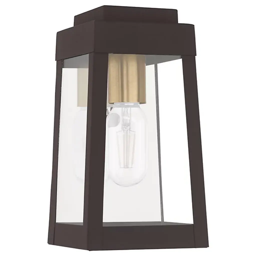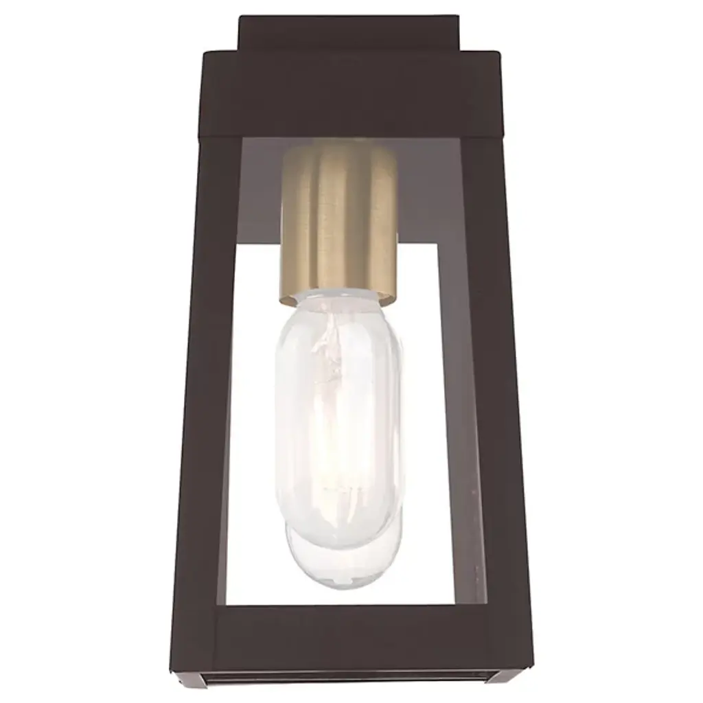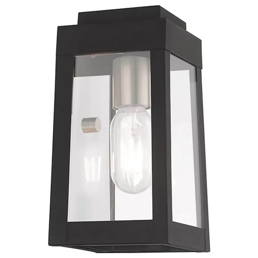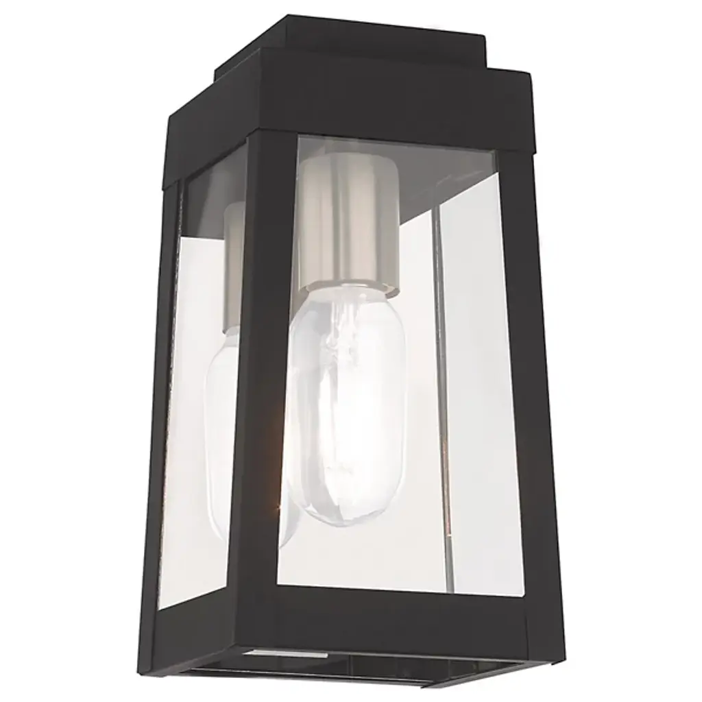 Elevate your home exterior’s key architectural features with the dapper design of the Henry Single Light Outdoor Wall Sconce from Alder & Ore. The sconce evokes the familiar lantern with an industrial edge. It mounts securely to the wall with a low-profile backplate. The metal structure proves durable throughout the seasons. It presents a bold, graphic silhouette as a tapered rectilinear form. Clear glass panels slide into the structure to elegantly display the lone bulb suspended inside. The piece turns on to create a radiant ambient light that invites one in.