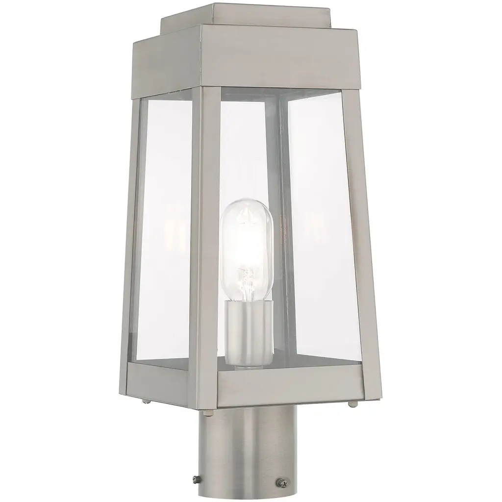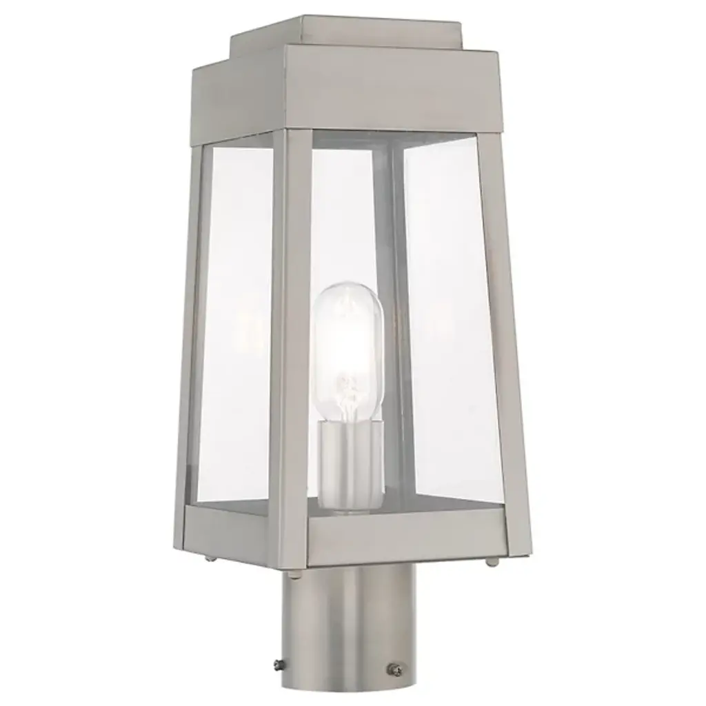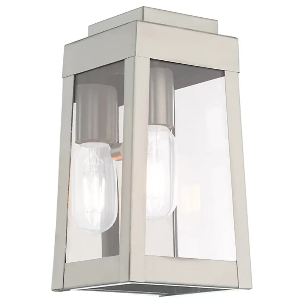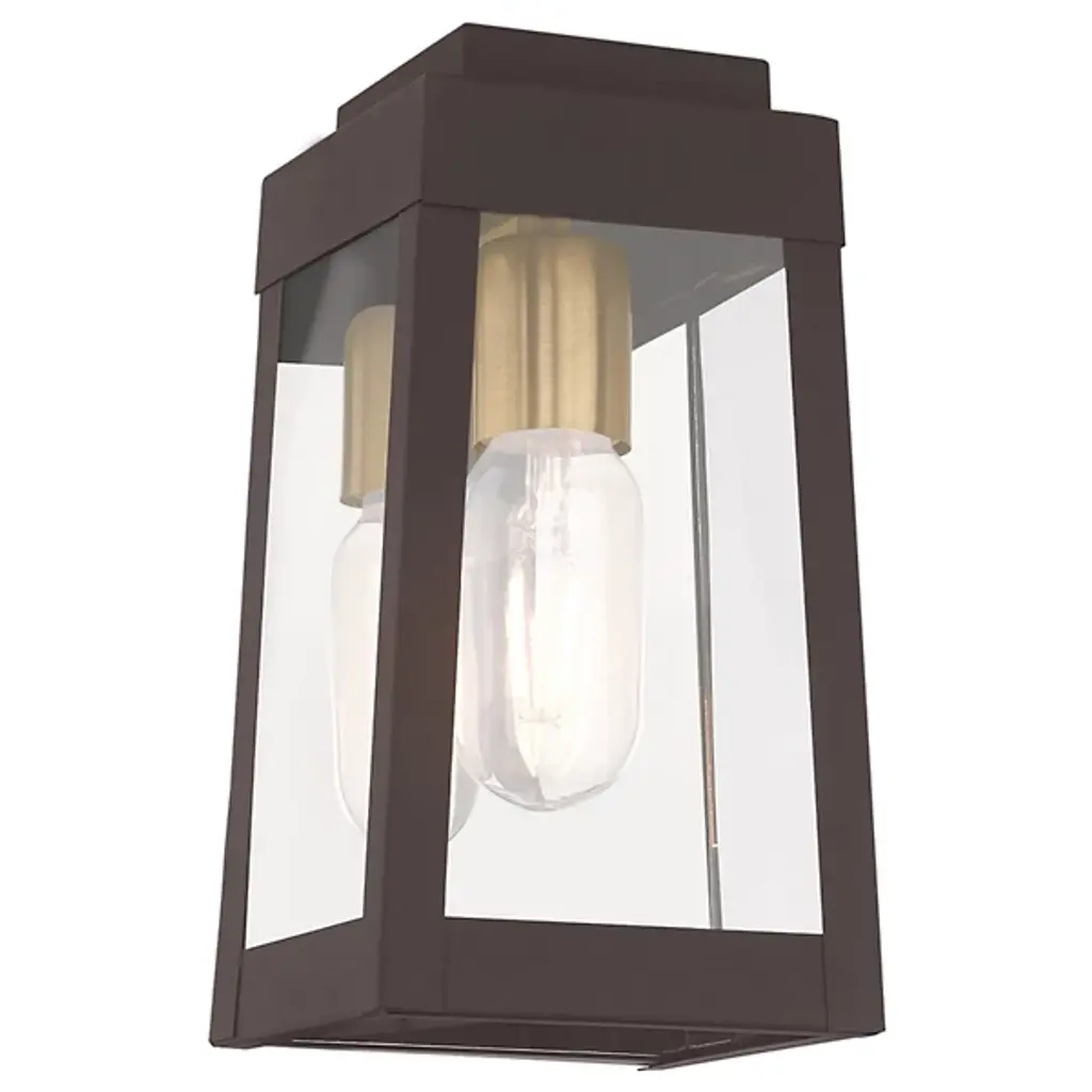 Elevate your home exterior’s key architectural features with the dapper design of the Henry Single Light Outdoor Wall Sconce from Alder & Ore. The sconce evokes the familiar lantern with an industrial edge. It mounts securely to the wall with a low-profile backplate. The metal structure proves durable throughout the seasons. It presents a bold, graphic silhouette as a tapered rectilinear form. Clear glass panels slide into the structure to elegantly display the lone bulb suspended inside. The piece turns on to create a radiant ambient light that invites one in.