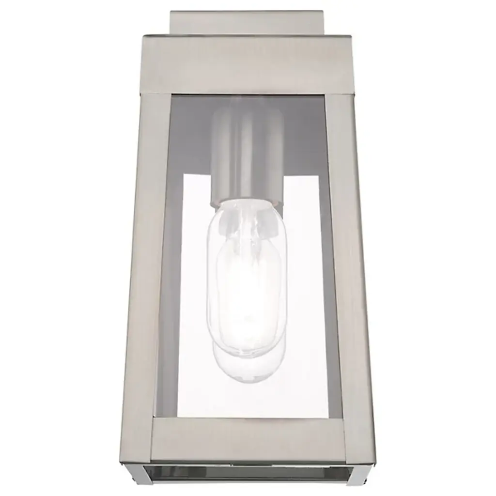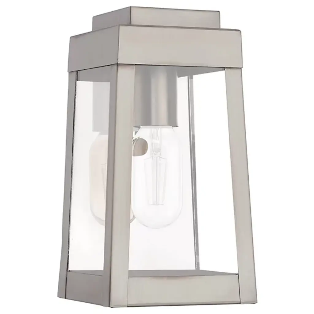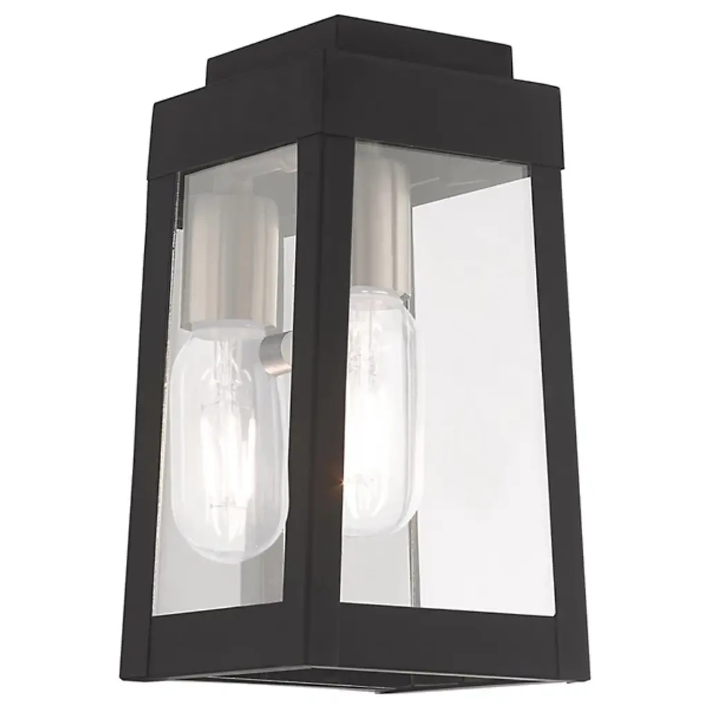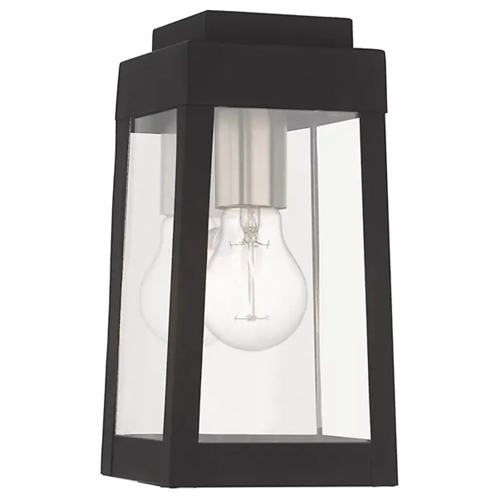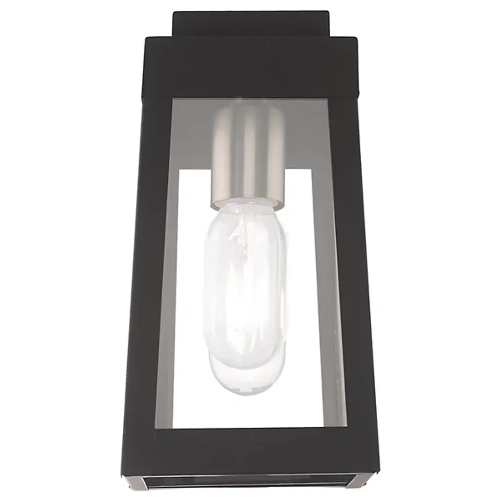 Elevate your home exterior’s key architectural features with the dapper design of the Henry Single Light Outdoor Wall Sconce from Alder & Ore. The sconce evokes the familiar lantern with an industrial edge. It mounts securely to the wall with a low-profile backplate. The metal structure proves durable throughout the seasons. It presents a bold, graphic silhouette as a tapered rectilinear form. Clear glass panels slide into the structure to elegantly display the lone bulb suspended inside. The piece turns on to create a radiant ambient light that invites one in.
