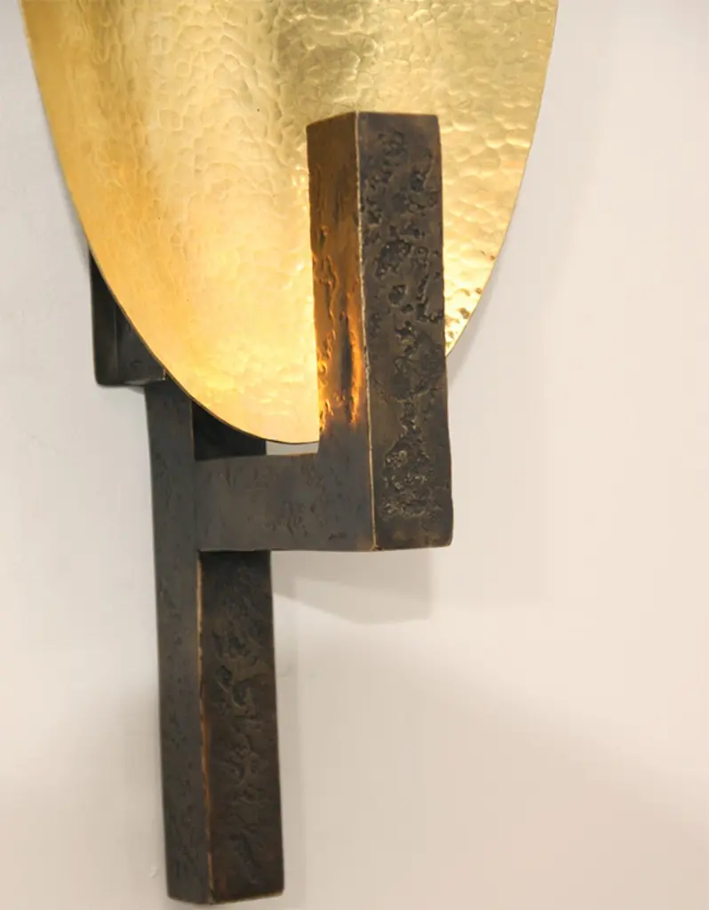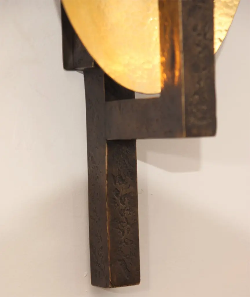 A contemporary patinated bronze sconce by Herve Van Der Straeten.Monogrammed: HVBulb: Bulbrite KX 2000 40 watt Crypton Xenon E12 candelabra 120 voltsPlease note, price is per sconce.