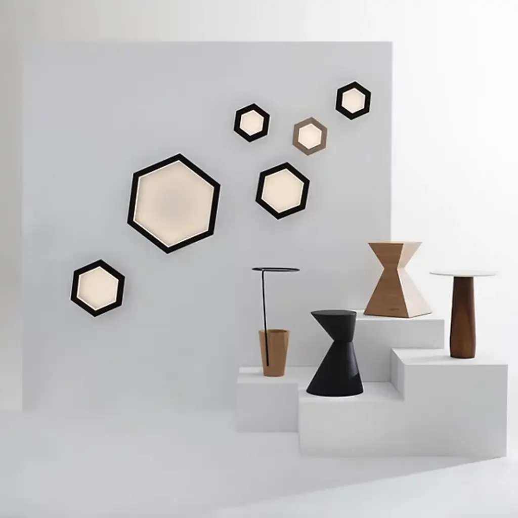 Contemporary style as sweet as a honeycomb. The Hexagon LED Wall Sconce by hollis+morris features a solid wood silhouette finished in hardwax oil and fully dimmable operation to set the perfect ambience in your living space. Mix and match this sconce with various-sized versions from the same collection and create a captivating display of beauty and illumination in a hallway.